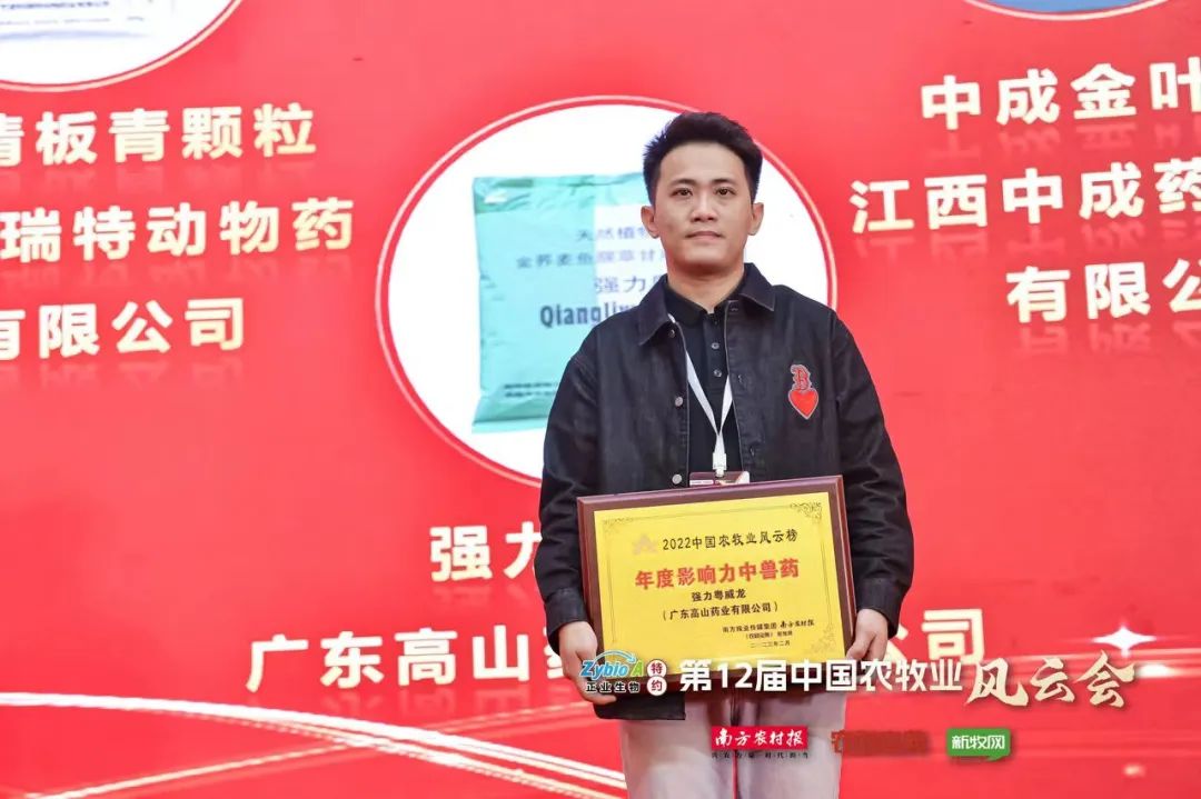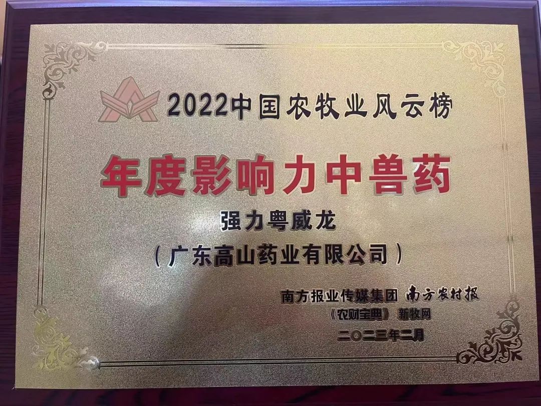 問初心·知變通·開新局,由農財寶典·新牧網組織舉辦的第12屆中國農牧業風云會暨農財寶典創刊20周年慶典,于2月19-21日,在廣州花都華鉅君悅酒店隆重召開,強力粵威龍榮獲2022中國農牧業風云榜之“2022年度影響力中獸藥”稱號。