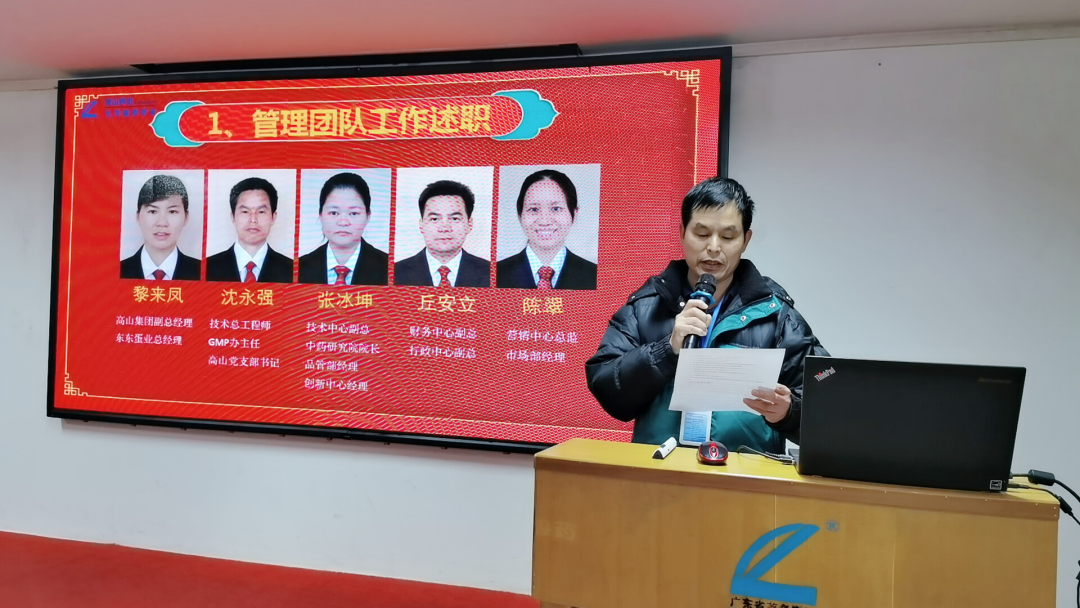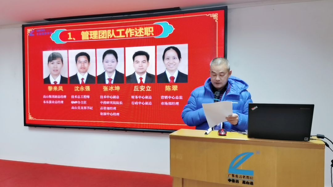 華南農業大學研究生第二導師、廣東海洋大學客座教授、高山集團董事長梁其佳作員工激勵,對2022年的工作總結,為2023年的工作展望,并就《2022年十件工作大事》和《2023年十件工作安排》作了解讀。激勵大家要團結一心,堅定信心,克服困難,恪守高山理念,守正創新,藥創食創雙輪發展,寄語高山戰友們,艱難奮進,繼續前行,共創高山鞏固與建設新輝煌!