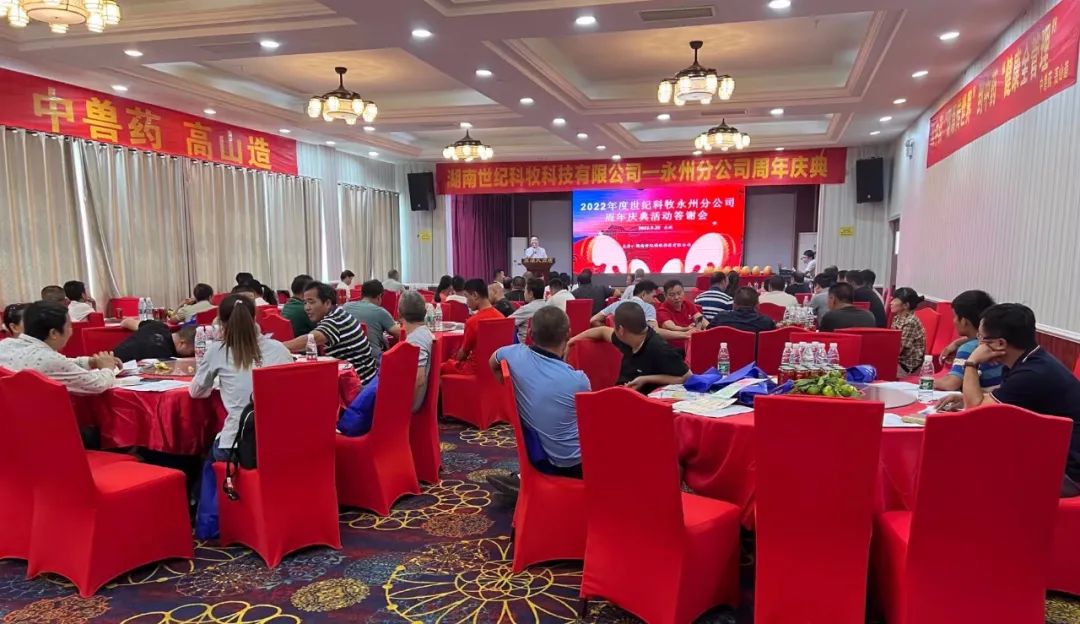 2022年9月25日,高山集團五星形象店湖南世紀科牧科技有限公司永州分公司周年慶典活動答謝會暨蛋雞技術專場講座,在永州市成功召開,高山加盟形象店店長與團隊人員、客戶代表等160多人參加會議。中草藥大成者彭激夫教授、高山集團營銷總監陳翠、吳文靜助理、湖南區域經理黎榮宇及梁鑫經理等參加。
