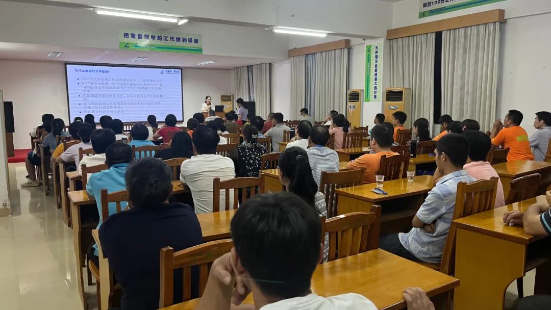 同步,高山中藥研究院副院長(zhǎng)吳潔作《關(guān)于GMP文件管理》主題學(xué)習(xí)。
