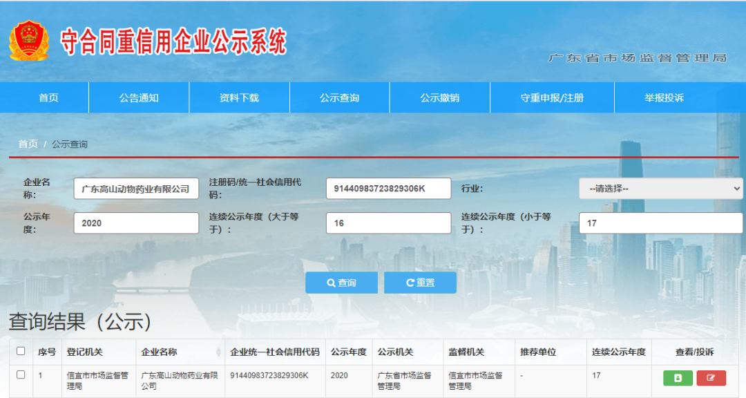 近日,廣東省市場監(jiān)督管理局“守合同重信用企業(yè)公示系統(tǒng)”公示:廣東高山動物藥業(yè)有限公司連續(xù)第17年被授予“廣東省守合同重信用企業(yè)”榮譽稱號。