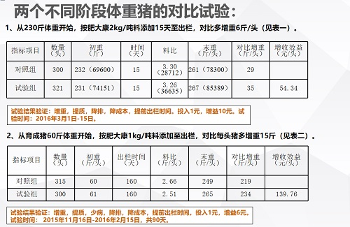 對比結果:使用中草藥添加劑肥大康肉質改善明顯,均達到理想值、天然、健康。