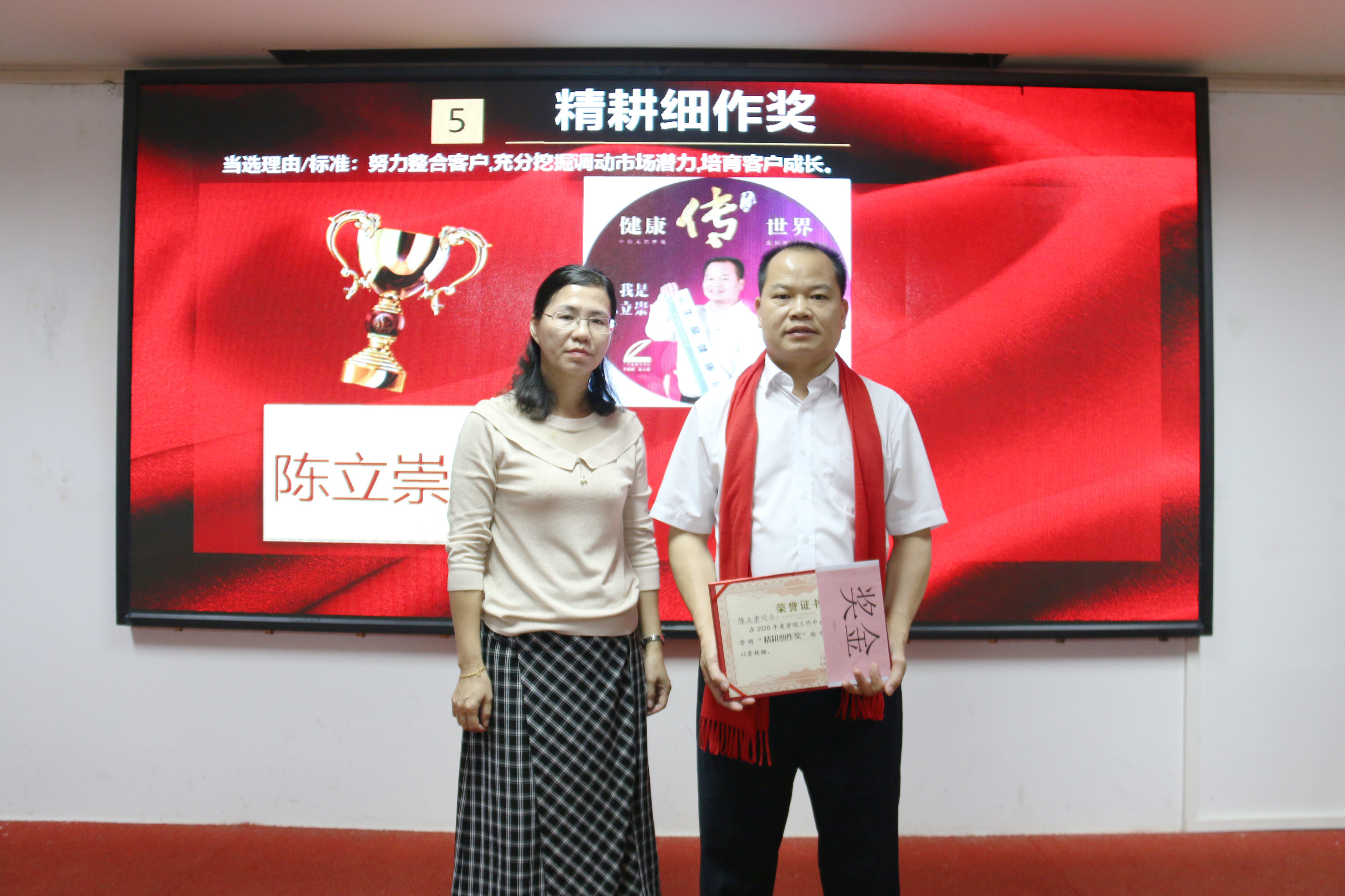 2020年,在新冠疫情、飼料禁抗、非瘟和新版GMP執行等的多重影響下,取得來之不易的成績。首先,對2020年度營銷優秀人員進行頒獎。