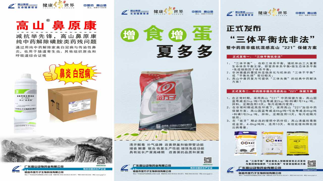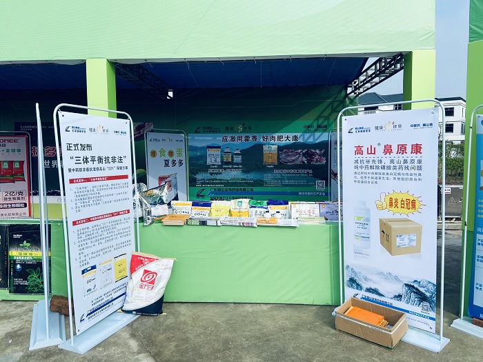展會上重點推介:1、純中藥鼻原康解決家禽鼻炎、白冠病;2、增食、增蛋、解暑、驅(qū)蟲,請用夏多多保健;3、非瘟下抗非請關(guān)注三體平衡抗非法暨中藥防非瘟抗混感高山“221”保健方案。