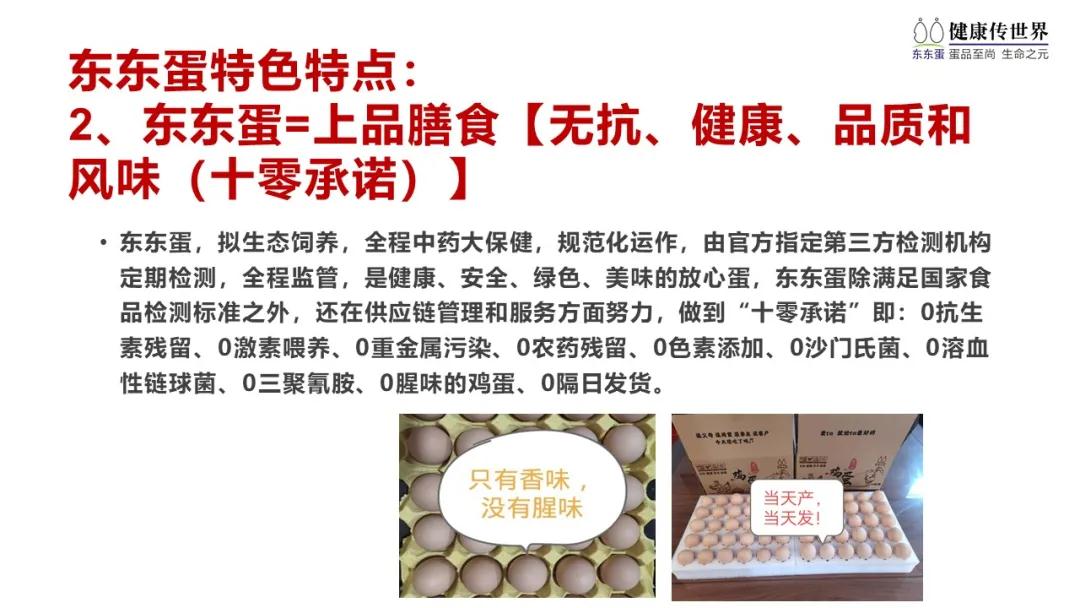 一枚雞蛋,孕育一個(gè)小生命,雞蛋是世界上營養(yǎng)最全面的食品。東東蛋&生命之元,自其品牌誕生之日起,以健康、安全、品質(zhì)、風(fēng)味和功能之發(fā)展原則。秉承無抗、健康、中藥、高質(zhì)為發(fā)展宗旨。
