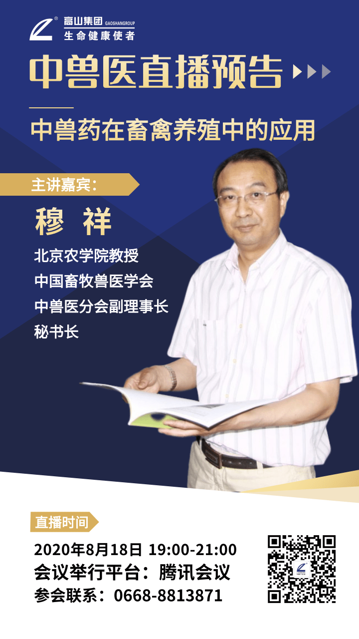 主講嘉賓:穆祥,北京農學院教授,中國畜牧獸醫學會中獸醫分會副理事長、秘書長