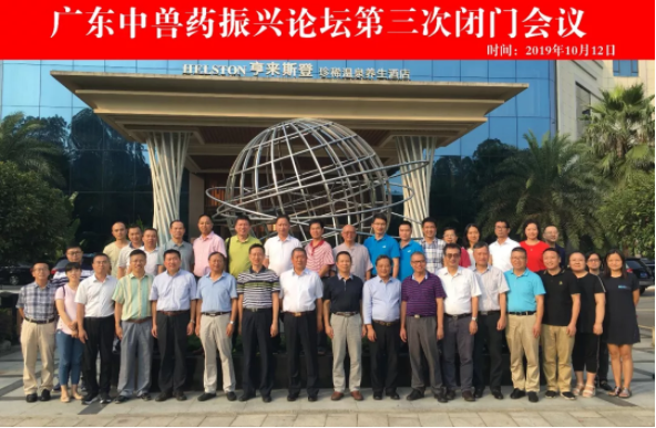 2019年10月12日,由廣東省動物保健品協會、廣東省畜牧獸醫學會專業委員會的支持領導下開展工作的廣東中獸藥振興論壇第三次閉門會議在廣州從化召開。高山集團董事長梁其佳和總工程師沈永強參加了會議。