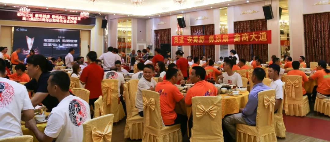 時光如水,歲月如歌。高山集團從揚帆起航到滿載星光,攜手共進,風雨兼程,拼博奮斗,輝煌成就,2019年6月25日迎來了創牌33周年的喜慶時刻。值第二季度營銷會議暨高山集團創牌33周年之際,高山集團舉辦了“歌唱生活,歌唱健康,歌唱高山,歌唱祖國”歌詠比賽為高山慶祝生日,參會人員及高山大家庭成員共百余人參加了晚宴。