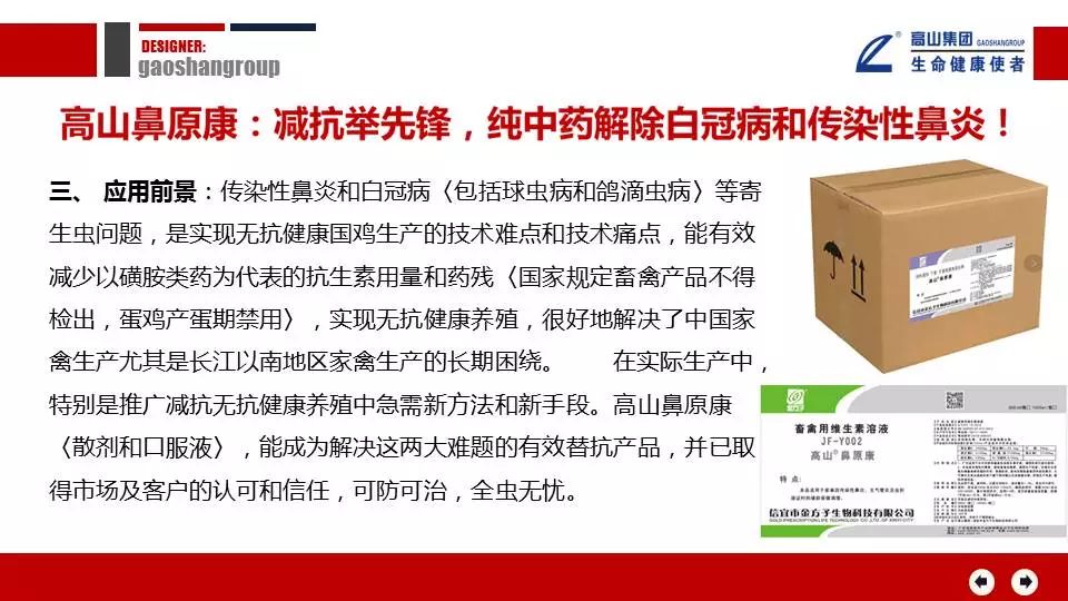 彭激夫教授的報(bào)告指出,中藥無抗健康養(yǎng)殖理念隨高山而來,高山從90年代開始堅(jiān)持中獸藥治療、預(yù)防和保健的中藥大健康理念,喉炎凈、強(qiáng)力粵威龍、正冠樂等經(jīng)典產(chǎn)品,歷經(jīng)三十年市場(chǎng)而經(jīng)久不衰。我們要因應(yīng)行業(yè)發(fā)展趨勢(shì)和養(yǎng)殖企業(yè)對(duì)環(huán)境重視程度的變化,構(gòu)建畜牧人命運(yùn)共同體,并始終以健康作為前提。報(bào)告分別針對(duì)蛋雞、豬的最大影響因素和非洲豬瘟帶來的機(jī)會(huì)等進(jìn)行了深度闡述。