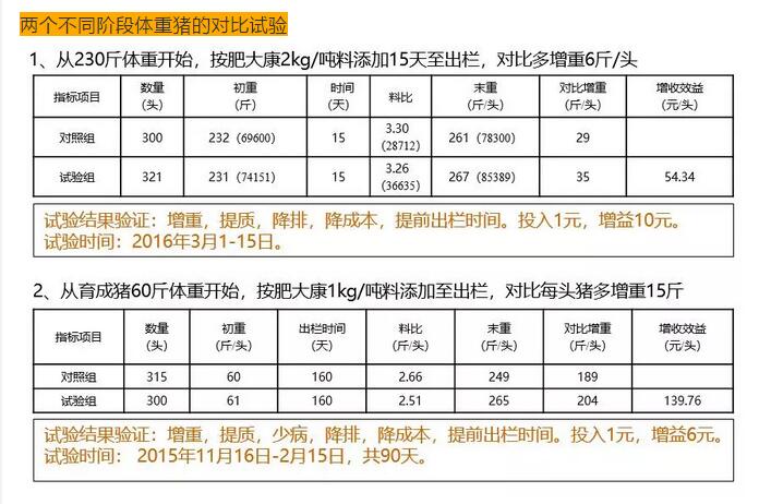 方案2:從170斤豬體重開始添加使用至出欄,按肥大康2kg/噸料。