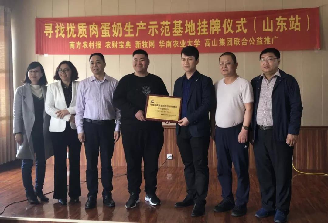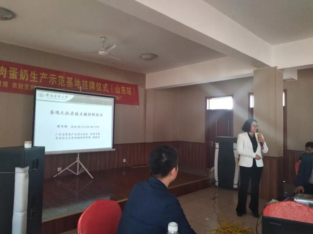 華南農業大學動物科學學院副院長、珠江學者、廣東省家禽技術產業體系首席專家謝青梅教授,中草藥大成者、中國著名禽病專家、中國動保協會咨詢部中獸藥研發與應用首席專家彭激夫,《農財寶典》畜牧版市場副總監孫亮,高山集團董事長梁其佳,常務副總黎來鳳,山東區營銷經理楊立堂,新泰市西張莊鎮馬進養雞場場長馬進等出席了授牌儀式。