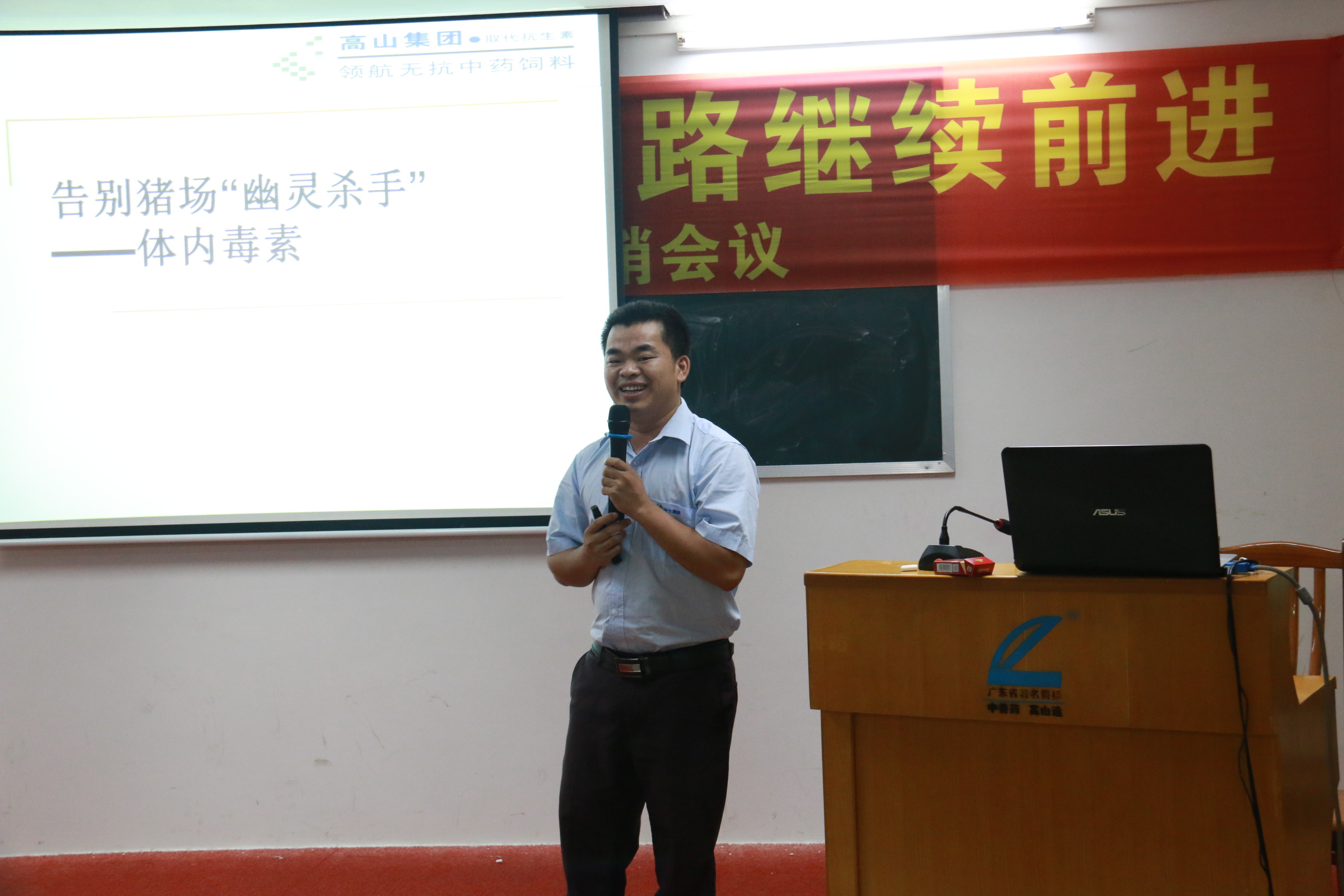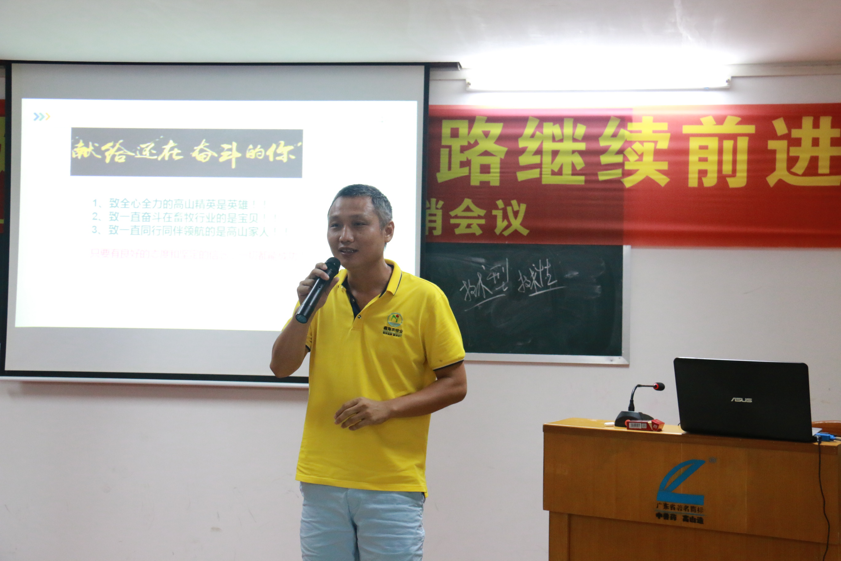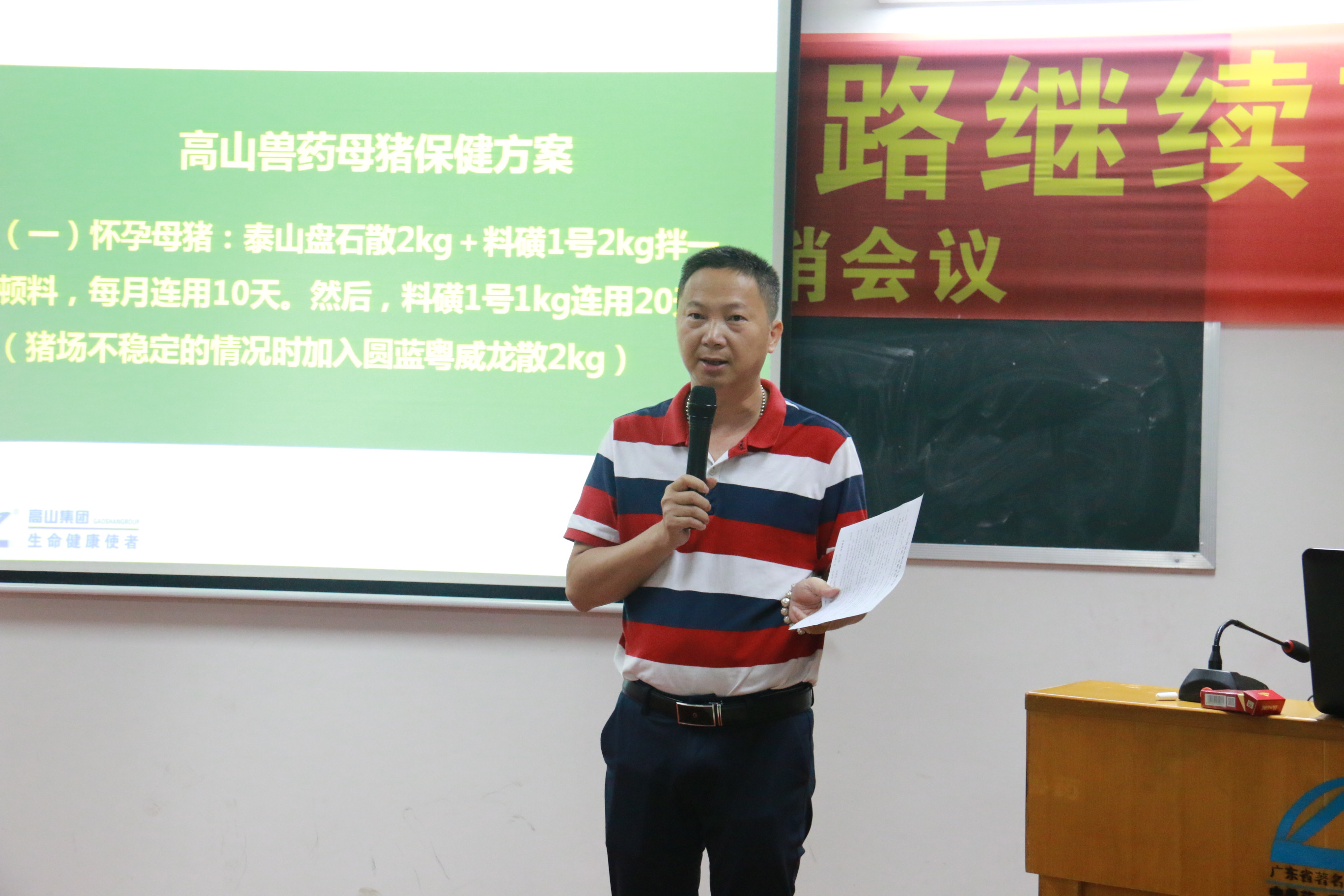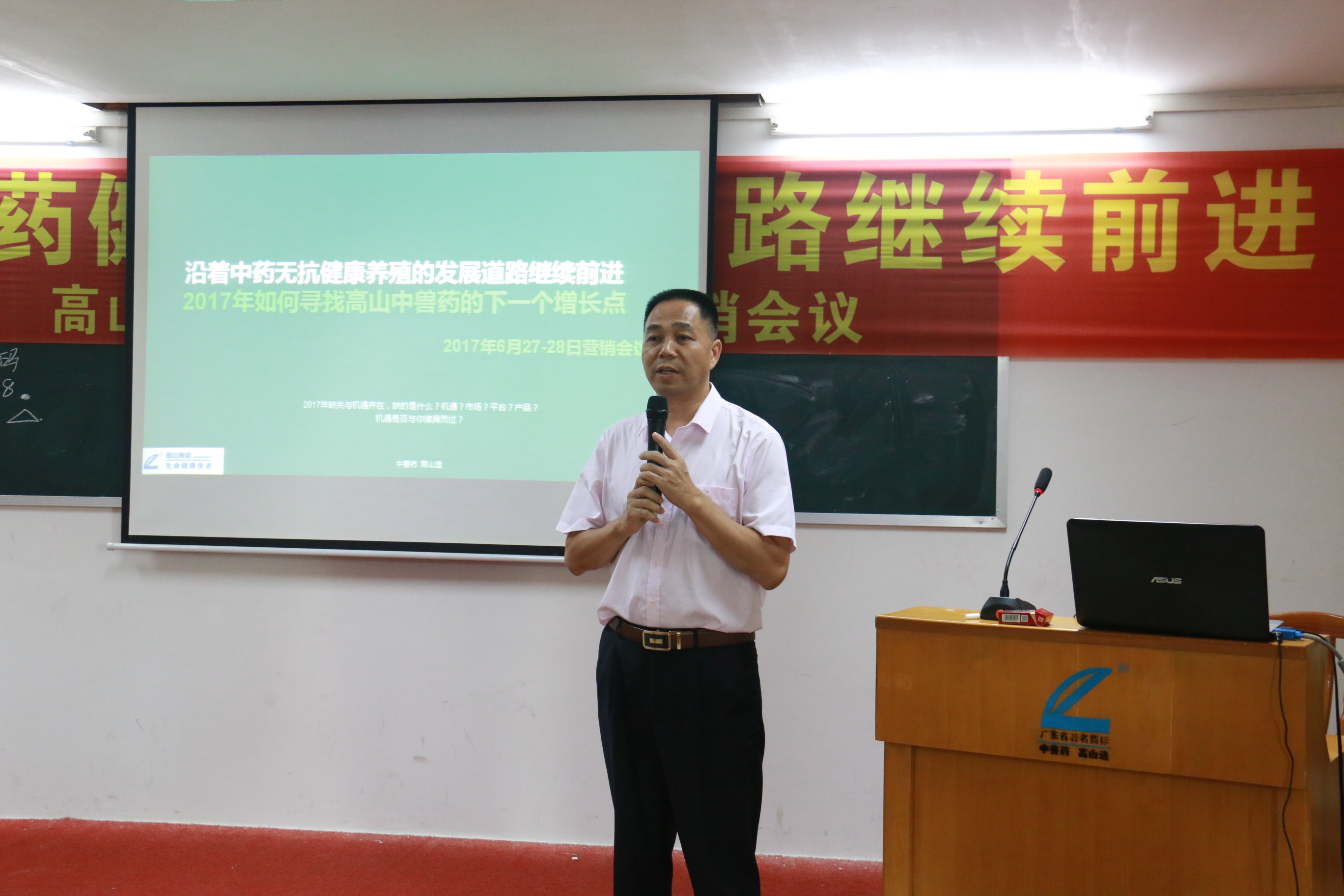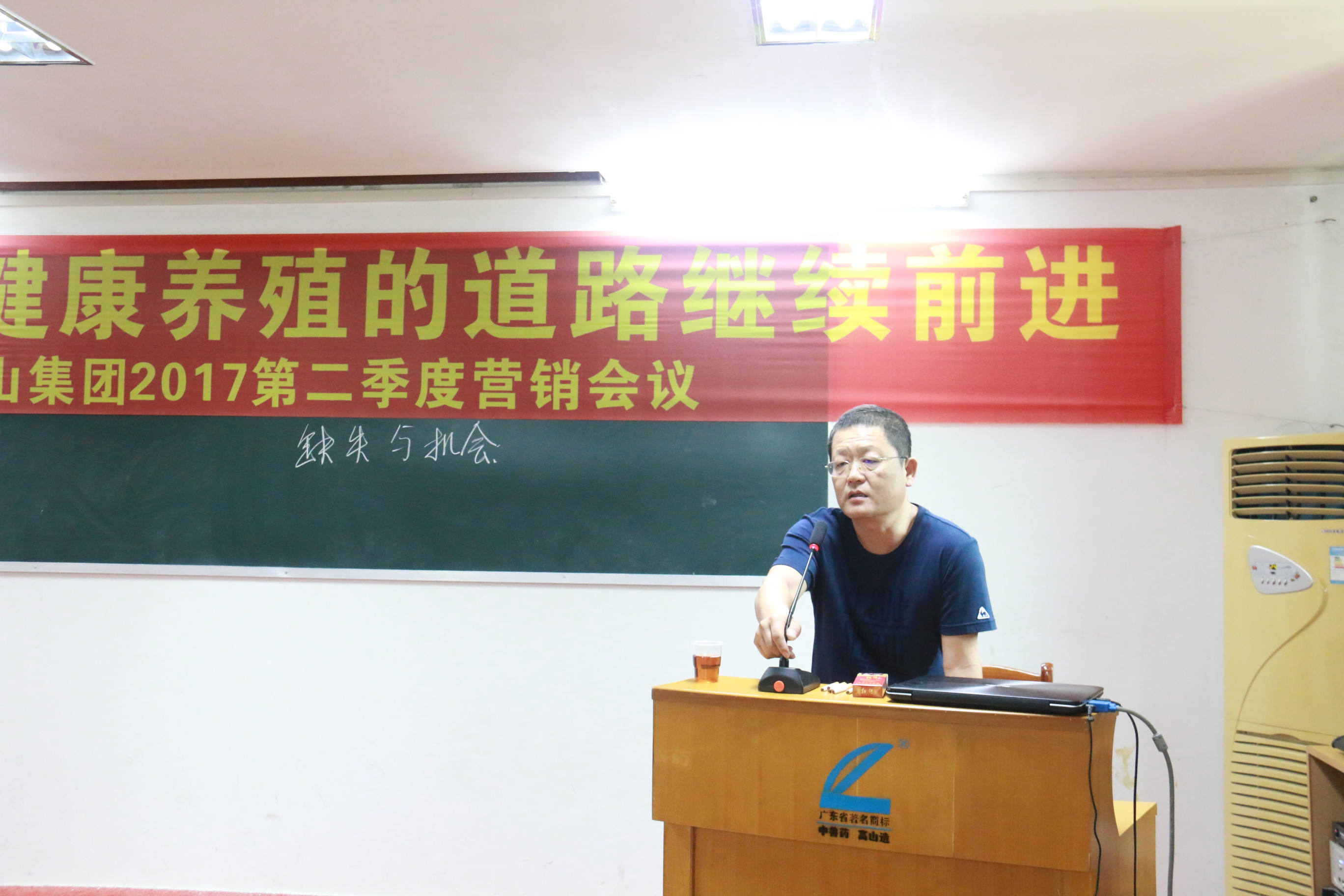 2017年6月27-28日,高山在集團總部召開為期兩天的主題為《沿著中藥無抗健康養殖的發展道路繼續前進》暨第二季度營銷會議。全國各省區營銷經理、技術經理、部門經理以上人員、營銷支撐人員等近60人出席會議。