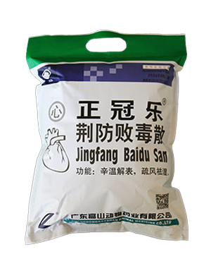 第一天,按(心型正冠樂散4g+高山大巴散4g+藿香正氣口服液4ml+料磺1號2g)每斤料拌料使用,第二天起用藥量減半,連用4天,從第三天臨床反饋基本無死亡;第5-7天按1-2kg/噸料添加免增粵威龍,臨床效果及機體恢復更好。