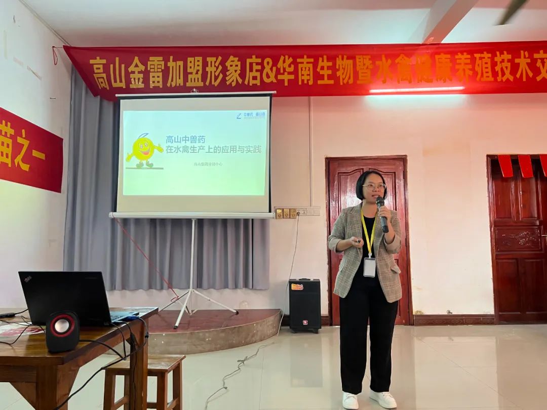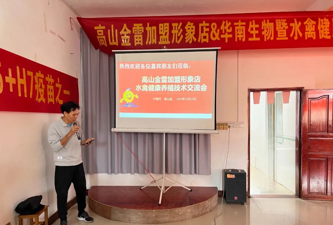 2023年12月13日,高山“1+1”形象店~玉林金雷獸藥暨水禽健康養(yǎng)殖交流會在廣西玉林市成功舉辦,高山集團營銷經理梁祖榮、楊干超,營銷中心鐘飛燕經理及高山金雷形象店店長、客戶嘉賓代表等80多人參加會議。