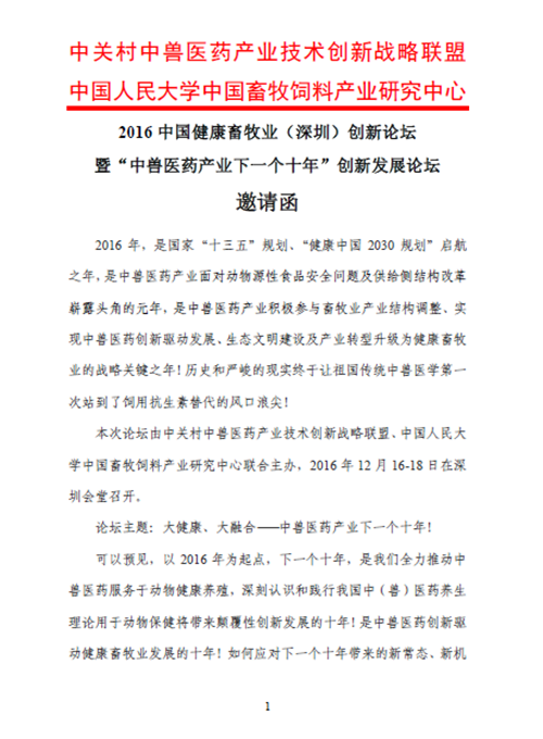 主辦單位:中關村中獸醫藥產業技術創新戰略聯盟