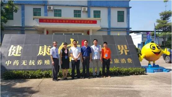 中國畜牧獸醫學會副秘書長夏有彩(右二)、中國畜牧獸醫學會中獸醫分會秘書長穆祥(右三)、中國畜牧獸醫學會中獸醫分會副理事長韋旭斌(左二)、茂名市畜牧局馮殷林副局長(左四)、著名禽病專家中草藥大成者彭激夫教授(左一)、中國人民大學農業與農村發展學院黨委書記張利庠教授(右四)、廣東海洋大學張繼東教授(右一)和高山集團梁其佳董事長(左三)合影