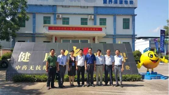 廣西玉林水產畜牧業協會龐宏志會長(右三)、廣西金陵集團黃雄董事長(左四)與公司高層在金方子合影