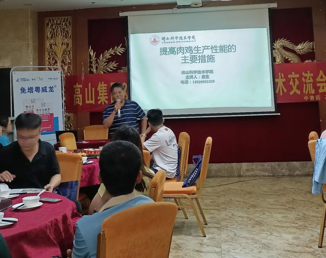 佛山科學(xué)技術(shù)學(xué)院袁生教授主講《提高肉雞生產(chǎn)性能的主要措施》,并對(duì)目前常見雞的疾病進(jìn)行了講解。