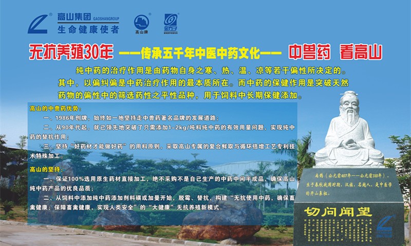 高山,創牌于1986年,始終堅持走中藥品牌的發展道路,致力于與養殖產業的廣大合作伙伴共建可持續健康發展的無抗養殖產業命運共同體。在未來,我們將繼續秉承做生命健康使者的發展使命。