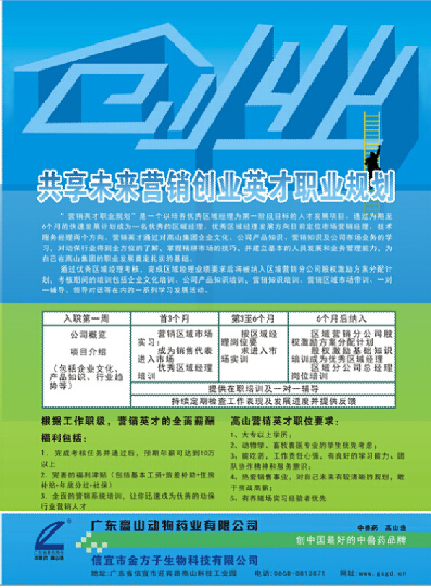 2014年11月28日,高山集團參加廣東省2015屆高校應屆畢業生供需見面會(粵西專場)。本次招聘活動,廣東高山集團以“個人零投入,共享未來干事業。公司扶一把,貢獻平臺共發展”為核心的營銷創業理念建立的“營銷英才職業規劃與發展平臺”,吸引應聘畢業生的興趣和深入了解,同時,也很好地展示了高山中獸藥健康文化的企業文化風采。