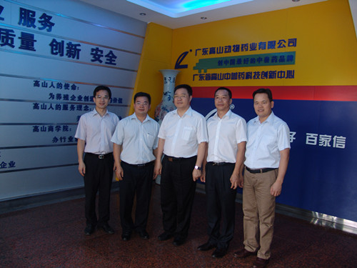在調研座談會上,公司領導丘總向調研組作了公司介紹,以及未來的發展愿景。廣東省銀監局劉福壽局長對高山堅持發展中獸藥的道路給以了充份肯定,表示“健康事業,產業報國”的企業使命站的高,看的遠。并對高山集團的發展進行了指導建議,要服務全國,重點實施大客戶戰略。同時指出,要充分發揮龍頭企業帶動作用,密切與金融機構的合作,努力發展生產,帶動信宜市經濟發展。