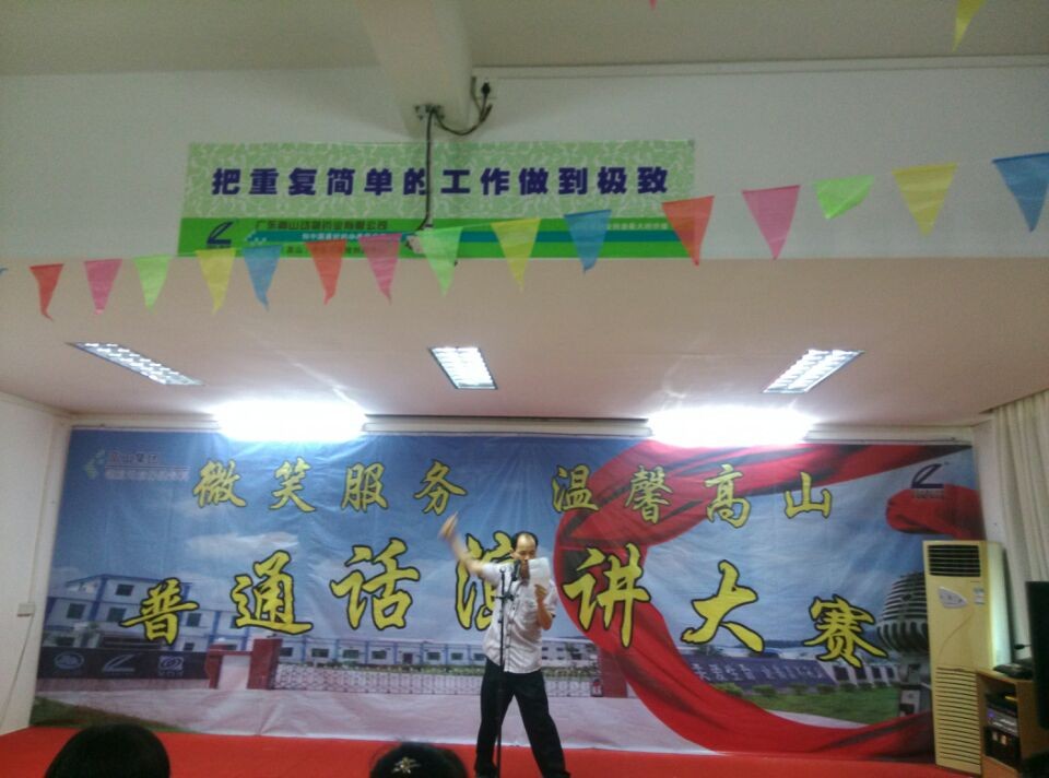 2014年5月3日,籍五四青年節到來之際,為提高全員的普通話水平,高山商學院聯合工會、婦聯、義工團在集團總部舉辦以“微笑服務、溫馨高山”為主題的普通話演講比賽。集團員工踴躍參與,共有40位戰友報名參加了演講比賽。