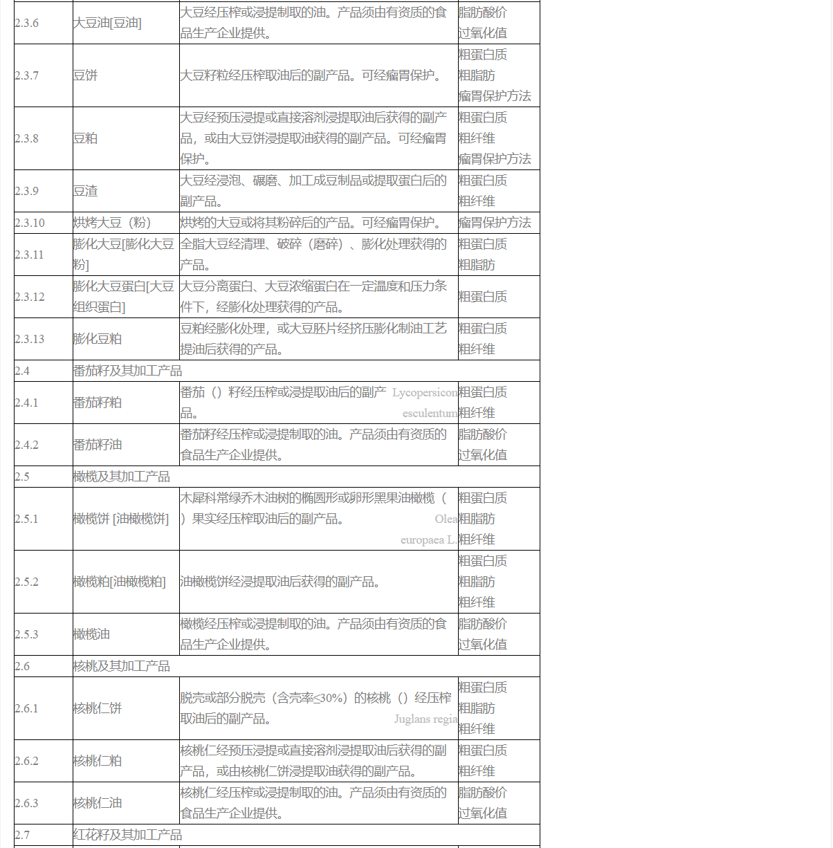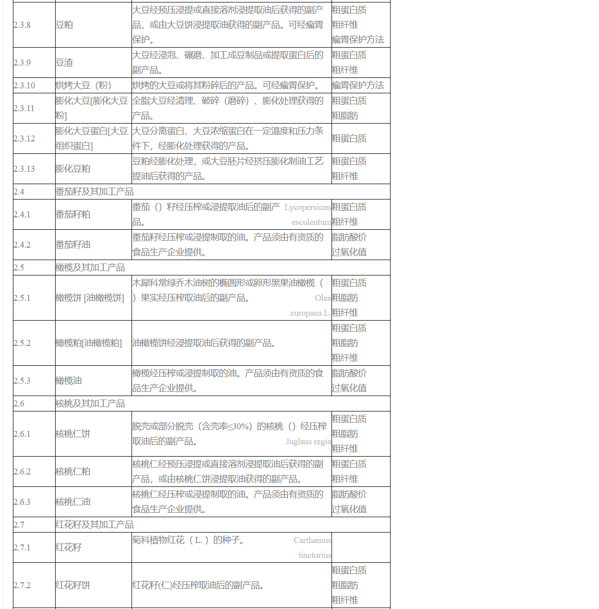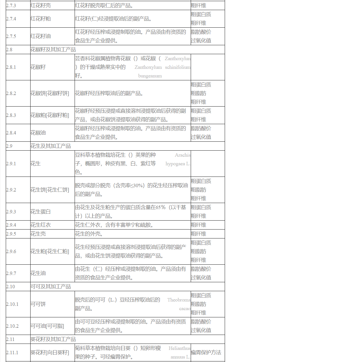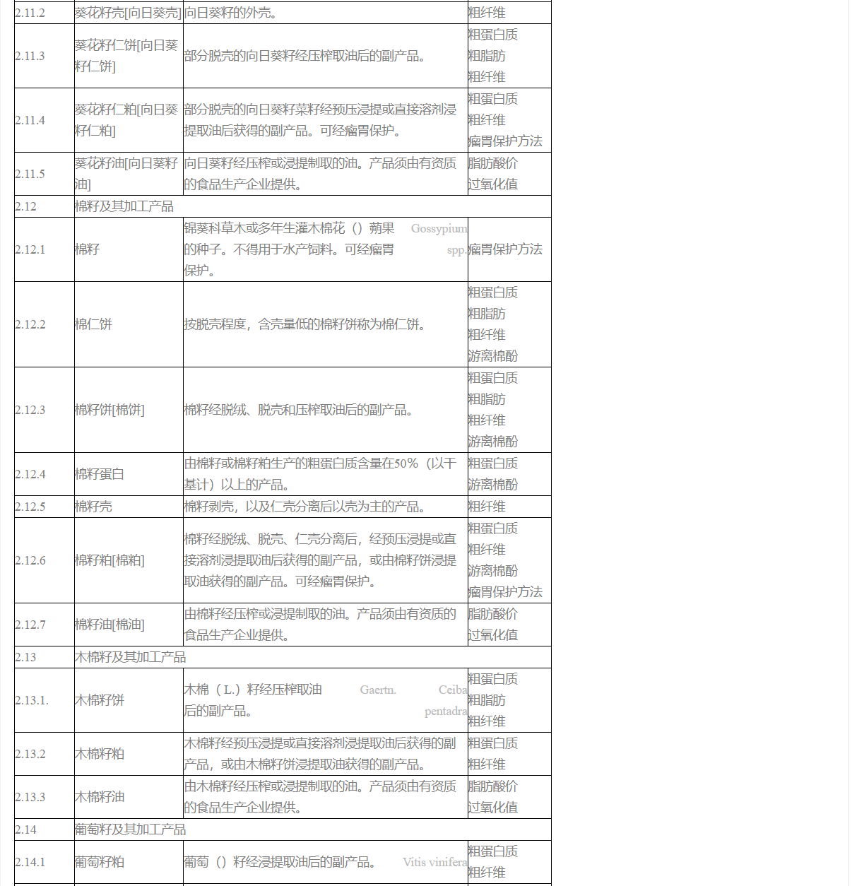 7. 目錄中所列原料,并不意味著企業可以任意無限量地使用,有些原料含有天然生物毒素,如棉籽粕等,企業應根據飼喂對象和原料特點進行合理選擇和使用。