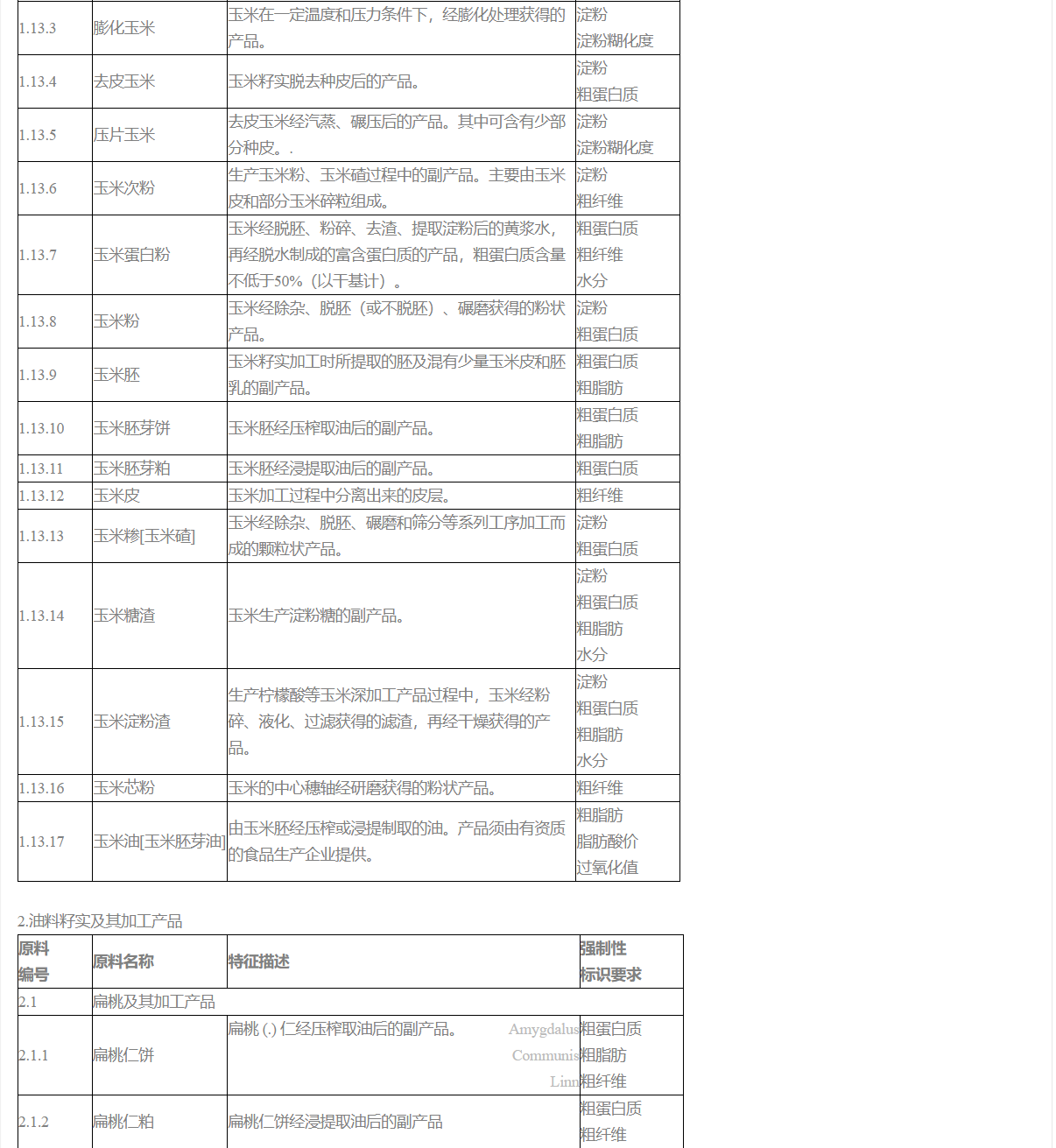 1.生產、經營用于工業飼料生產的飼料原料均應屬于本目錄規定的品種,工業飼料生產所使用的飼料原料也應屬于本目錄規定的品種,并且符合本目錄第三部分的相關要求。