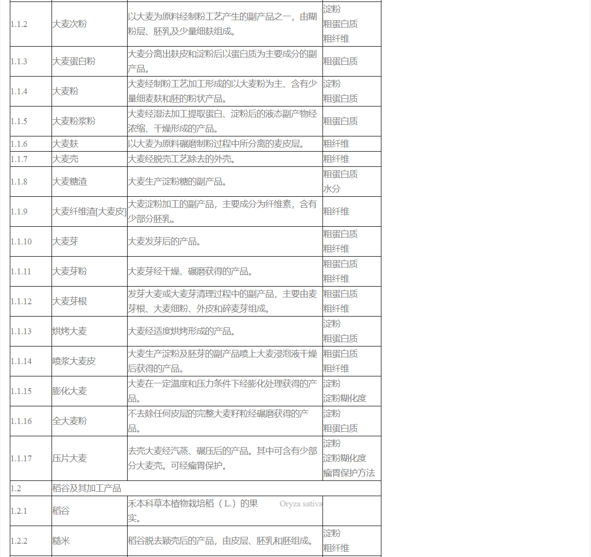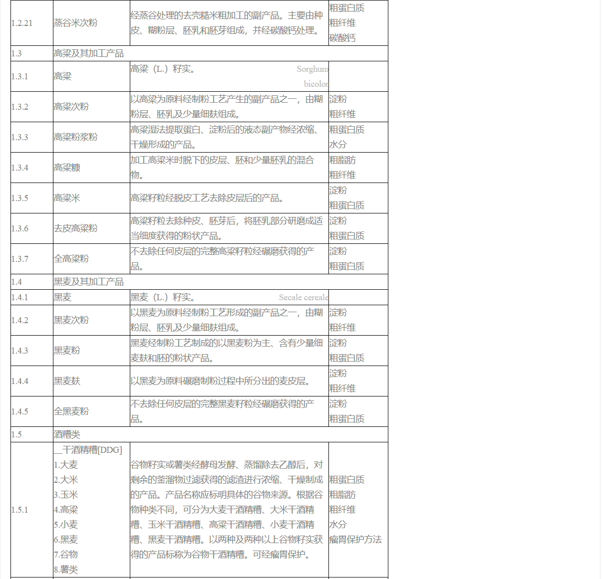 5. 本目錄第二部分給出了常用飼料原料加工術語的名稱、定義及其形成產品的修飾語,第三部分凡涉及到相應術語的,其含義與第二部分的定義一致。