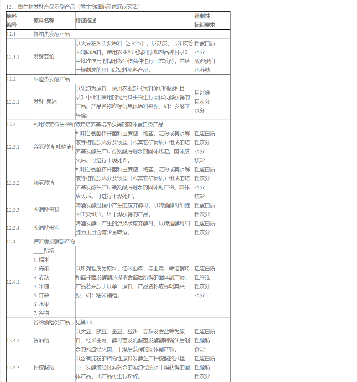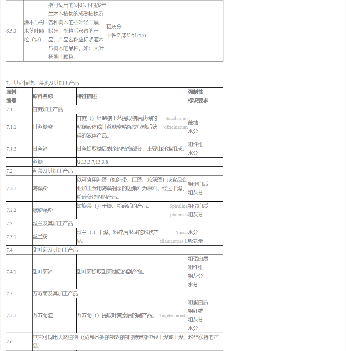 6. 按照本目錄生產、經營或使用的飼料原料,應符合《飼料衛生標準》、《飼料標簽》等強制性標準的要求。