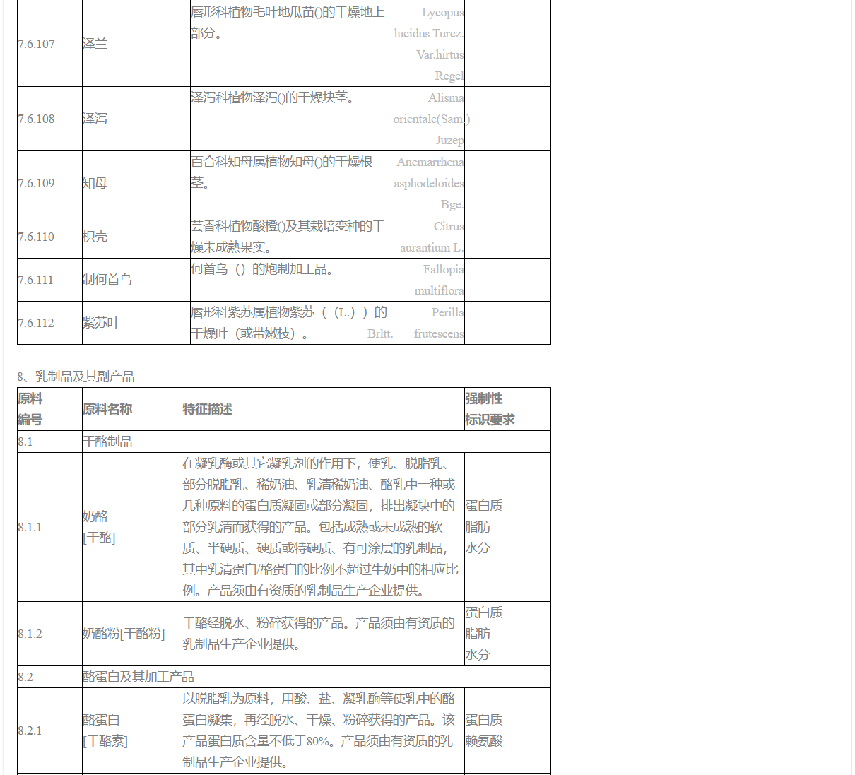 4. 目錄第三部分中“強制性標識要求”所規定的項目為原料的質量或衛生特征指標,應在原料標簽的分析保證值等項目中列出。