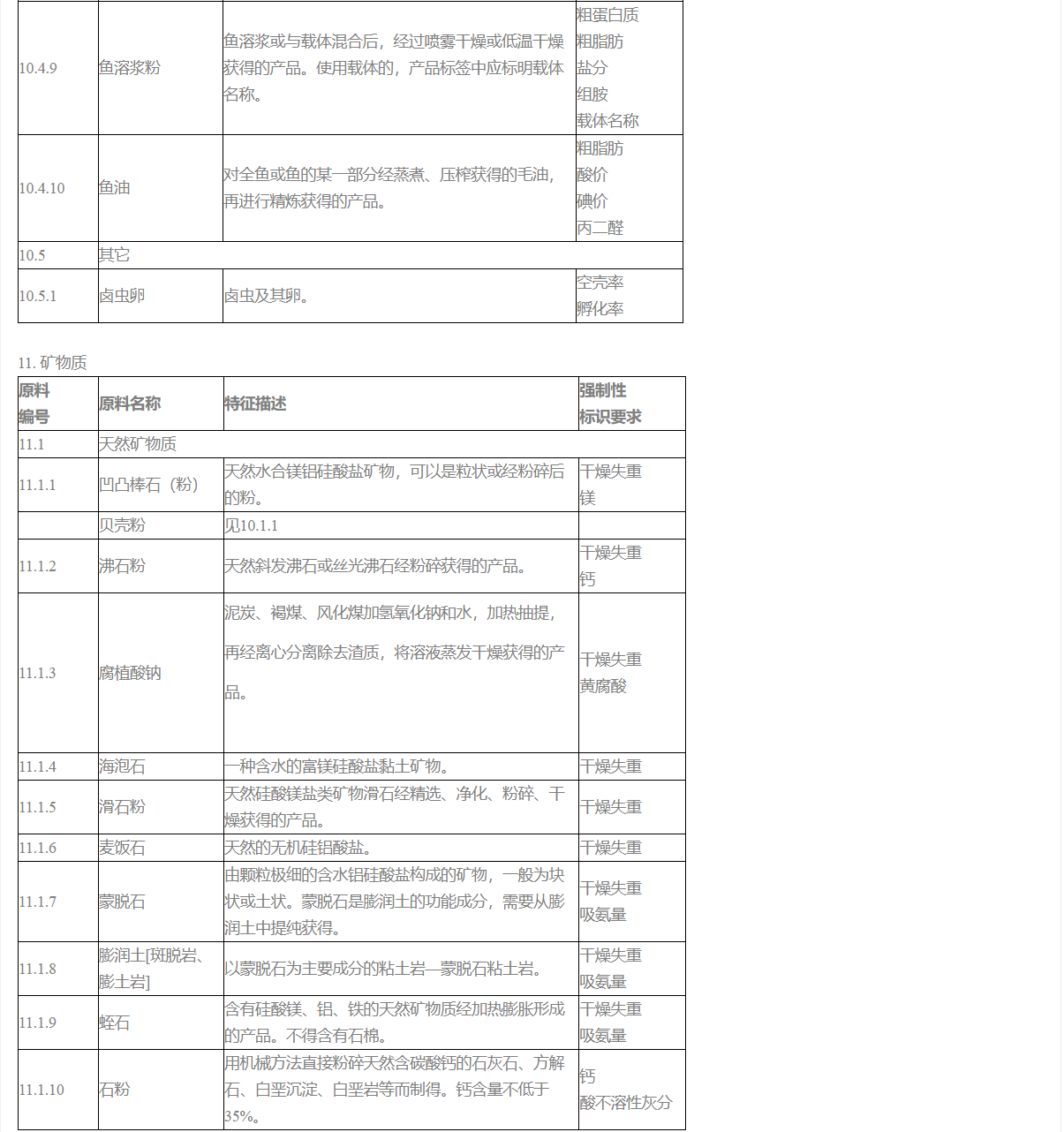 10.由兩種或兩種以上飼料原料復合而成的復合飼料原料,可以生產、經營和使用,但是,其原料應源自本目錄所列品種。