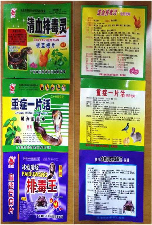 如近期在四川省、海南省、湖北省等均出現如:“麻杏石甘片(商品名:排毒王)”、重癥一片活(商品名:黃連解毒片),清血排毒靈(商品名:板藍根片)等均是非本公司生產的假冒偽劣產品,假冒產品的銷售電話號碼為:13959080359,是沒有通過實名制認證的福建龍巖地區的手機號碼,曾在市場上出現多次不同的假冒高山牌的產品,銷售均以物流代收貨款結算,對本公司的地址及相關企業信息極為熟悉,識別假冒產品的方法是鑒別有沒有統一規范的包裝視覺系統與正規合法的公司辦公電話。