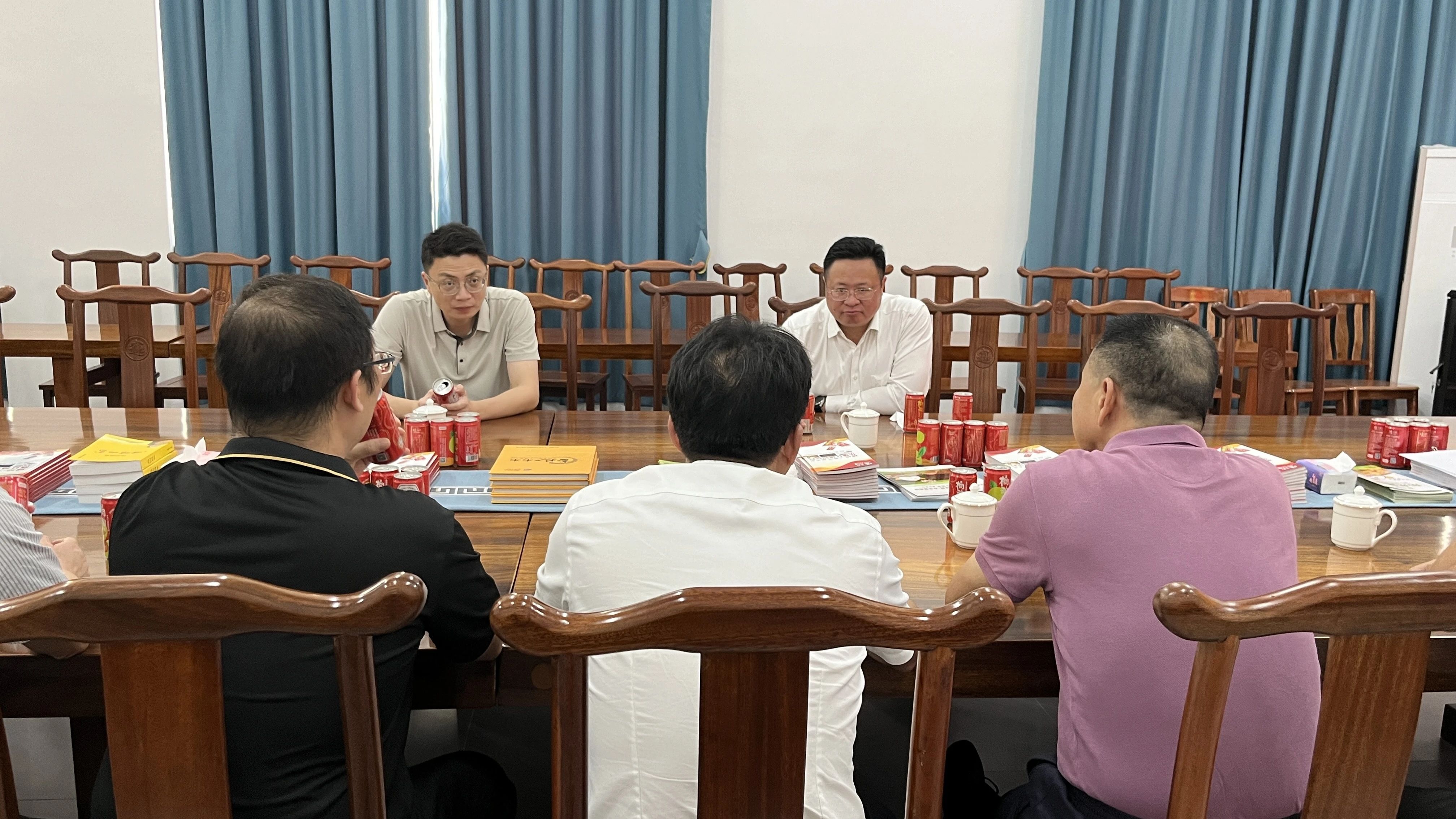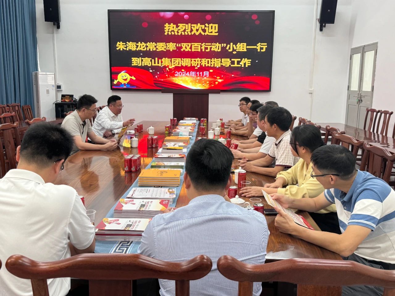 2024年11月14日中午,茂名市委常委、副市長朱海龍和信宜市副市長俞淮競,在“雙百行動”駐信宜服務隊隊長張杰、副隊長陸璃以及茂名、信宜相關職能部門領導的陪同下,蒞臨高山集團進行調研和指導工作。高山集團董事長梁其佳、總工程師沈永強、橘動飲料副總經理吳文靜等同志參加了座談會。