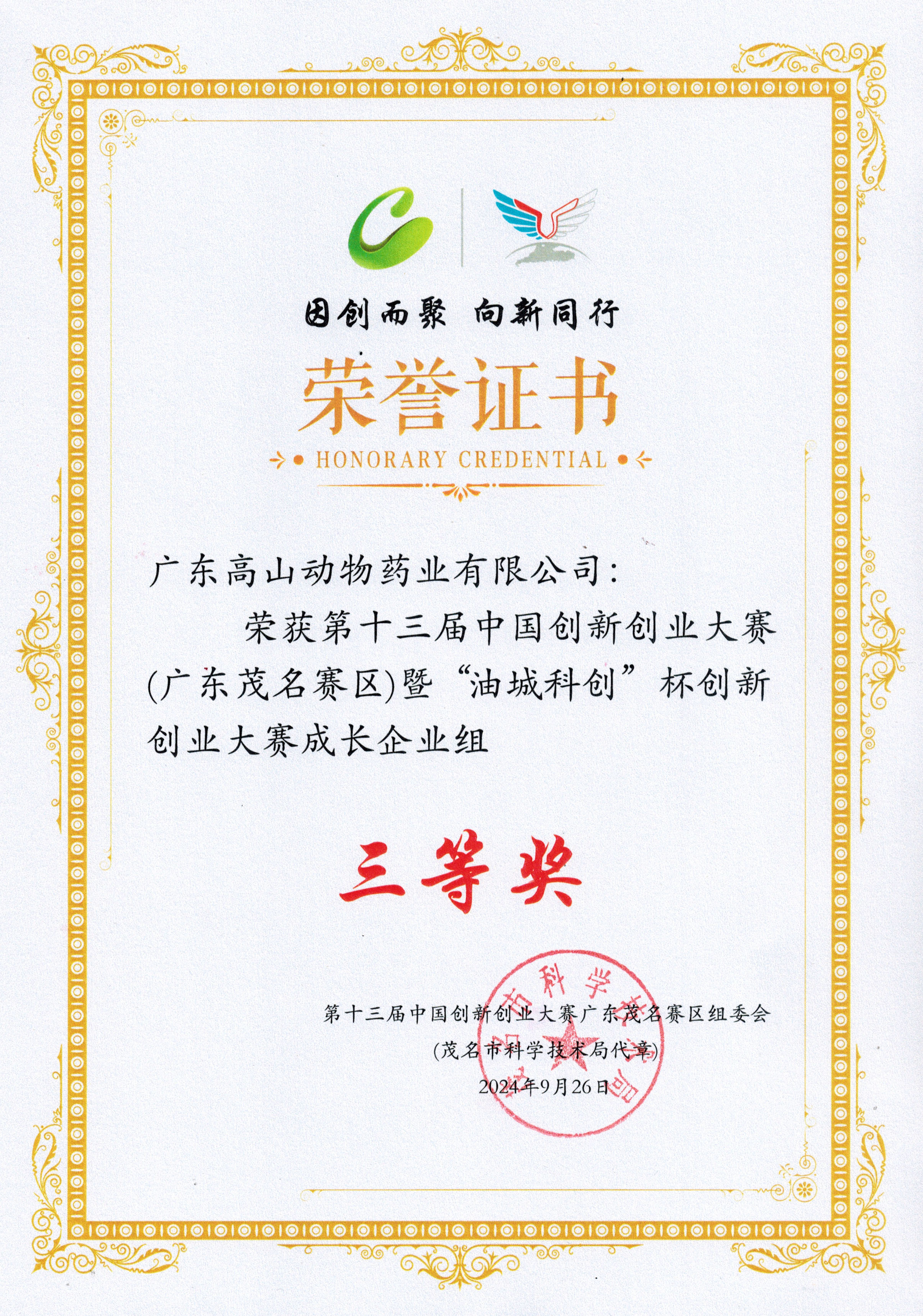 由茂名市科學技術局、中共茂名市委組織部和茂名高新技術產業開發區管理委員會共同舉辦的第十三屆中國創新創業大賽(廣東茂名賽區)暨“油城科創”杯創新創業大賽,于近日圓滿落幕。2024年,全市報名企業數量多達122家,經過茂名市初賽,廣東高山動物藥業有限公司成功晉級。在茂名賽區決賽階段,高山藥業參賽隊員表現優秀,最終榮獲成長組三等獎榮譽。