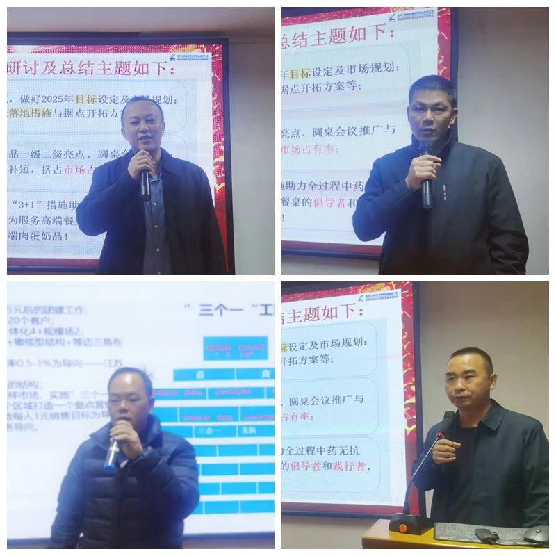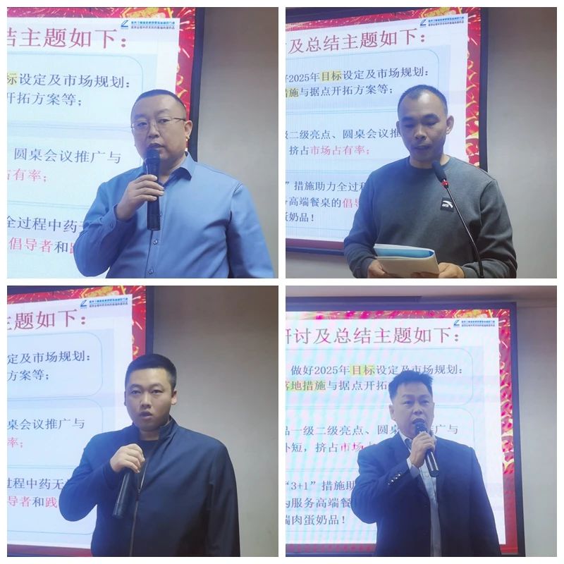 營銷中心總監陳翠作《2024-2025年度營銷工作總結與計劃》,首先她總結了2024年營銷工作,即將過去的2024年,我們緊扣中藥無抗大健康養殖理念開展工作,在卷中重生,實現銷售同比大增長,成績來之不易。同時,她也分析了不足及存在問題。在新的一年,我們要緊緊圍繞《2025年高山十件工作安排》的總規劃總方針總路線,扎實推進“三個1工程”,做好2025年度營銷工作,向無抗,向健康,向優質,前進。堅定啟航新征程,踔厲奮進譜新篇!