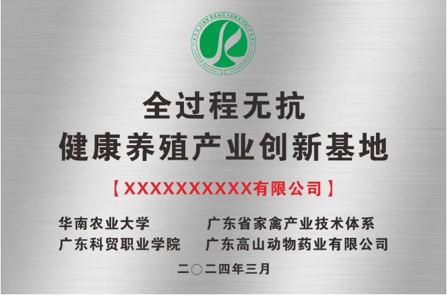 2024年5月24日,由廣東科貿職業學院與廣東高山動物藥業有限公司共同見證,在美業種豬場舉行了《全過程無抗健康養殖產業創新基地》示范場的掛牌授證儀式。