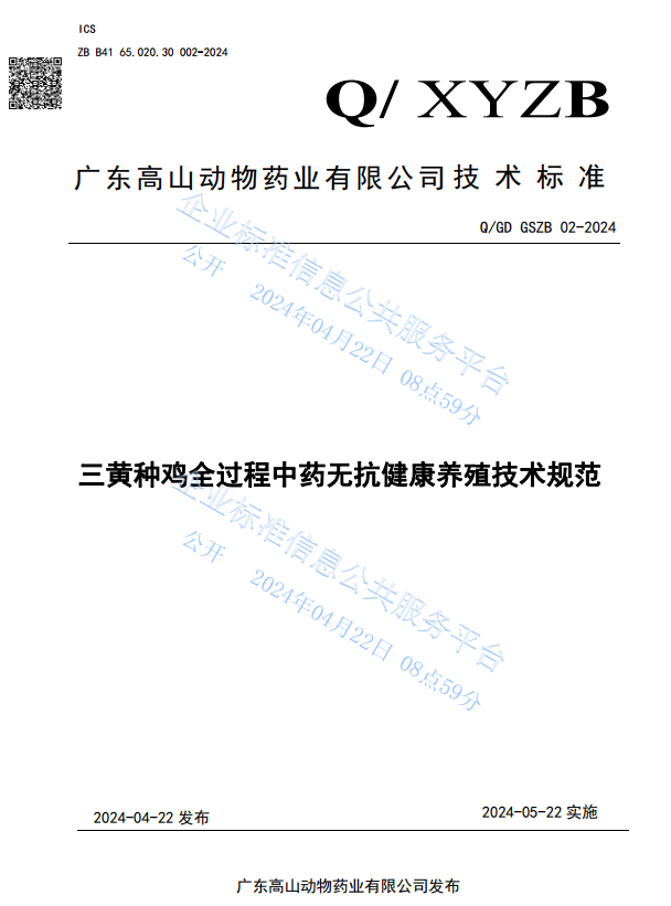 2024年4月27日,發布《三黃種雞全過程中藥無抗健康養殖技術規范》。