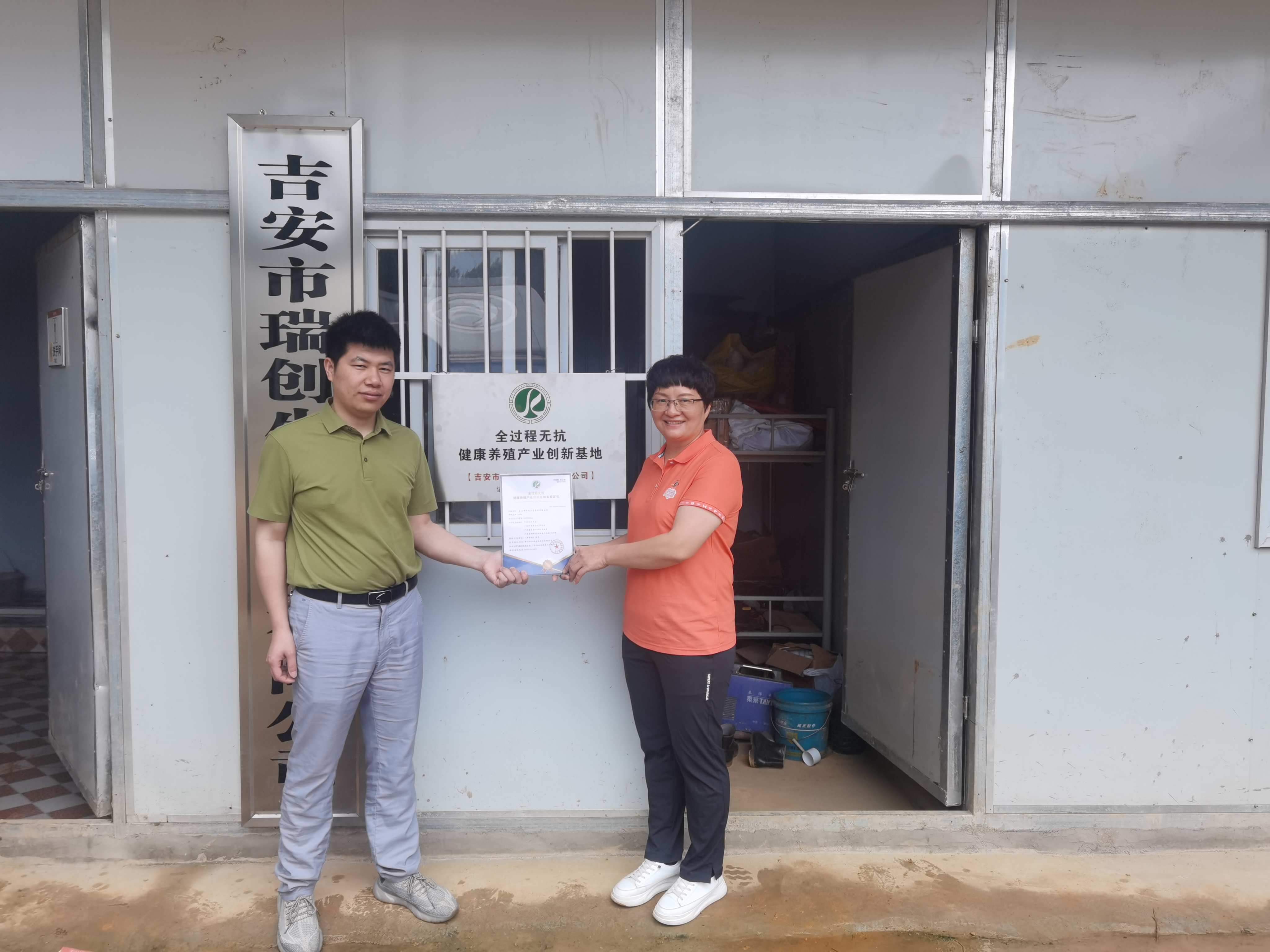2024年5月25日,吉安市瑞創生態養殖有限公司掛牌《全過程無抗健康養殖產業創新基地》牌匾并授予證書。