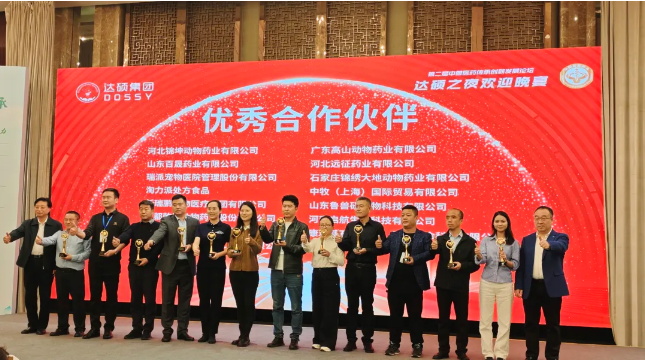 2024年11月7-9日,《第二屆中獸醫藥傳承創新發展論壇》在四川成都的費爾頓酒店舉行,高山榮獲中獸醫藥傳承創新發展“優秀合作伙伴”稱號。