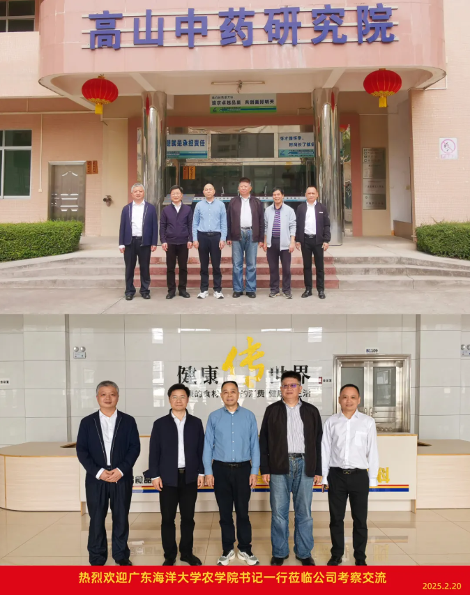 2025年2月20日,廣東海洋大學(xué)農(nóng)學(xué)院鄭殿峰書記、馬驛院長、王繼全副書記一行蒞臨高山集團(tuán)進(jìn)行調(diào)研與交流指導(dǎo)工作。高山集團(tuán)董事長梁其佳、沈永強(qiáng)書記/總工程師等陪同,先后參觀了高山總部、金方子生產(chǎn)基地、東東食品城竇城蛋客文化體驗(yàn)中心(館)等。