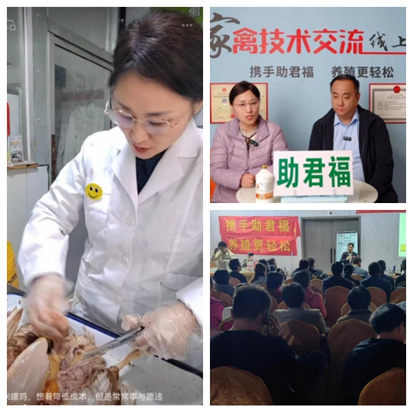 助君福公司深耕行業(yè)20多年,始終堅持以“客戶為中心、以技術服務”為基礎的服務理念,在預防、保健和治療三個層面提供深度服務,建立一套從建廠進雛到出欄淘汰全程跟蹤、一對一服務方案。一直秉承中醫(yī)中藥文化理念,緊跟養(yǎng)殖行業(yè)的發(fā)展與變化,堅持推進大健康無抗養(yǎng)殖。堅定做好畜禽養(yǎng)殖技術服務是公司賴以生存的根本,是公司存在的關鍵及最大價值,是永遠不可放松的弦。畢經(jīng)理經(jīng)常通過走訪客戶,總結用藥指導養(yǎng)殖經(jīng)驗,不斷提升養(yǎng)殖知識。助君福團隊人員精湛的養(yǎng)殖技術服務常讓養(yǎng)殖用戶豎起大拇指稱贊,并常年組織開展各種養(yǎng)殖技術培訓,深入養(yǎng)殖場對技術人員現(xiàn)場診斷和指導用藥;還開設了家禽技術交流線上課堂,以直播和視頻的形式進行推廣和服務;同時培養(yǎng)全體員工的服務意識和服務能力,不斷提高公司人員整體服務水平。