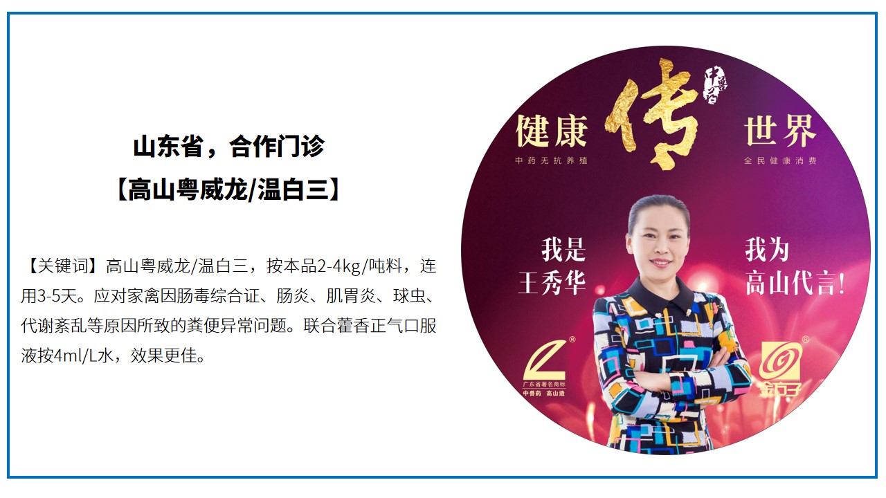 好產(chǎn)品需要強化宣傳與大力推廣。為了加大高山中藥產(chǎn)品的宣傳與使用,2020-2022年的疫情期間在山東省區(qū)域楊經(jīng)理的帶領(lǐng)下,開展中獸藥下鄉(xiāng)活動推廣與宣傳,同時也在線上抖音、視頻號、朋友圈等進行宣傳推廣,為養(yǎng)殖用戶講解健康全管理理念與“3+1”措施助力實現(xiàn)無抗健康養(yǎng)殖,幫助養(yǎng)殖戶實現(xiàn)養(yǎng)殖大健康的夢想、為養(yǎng)殖業(yè)保駕護航。