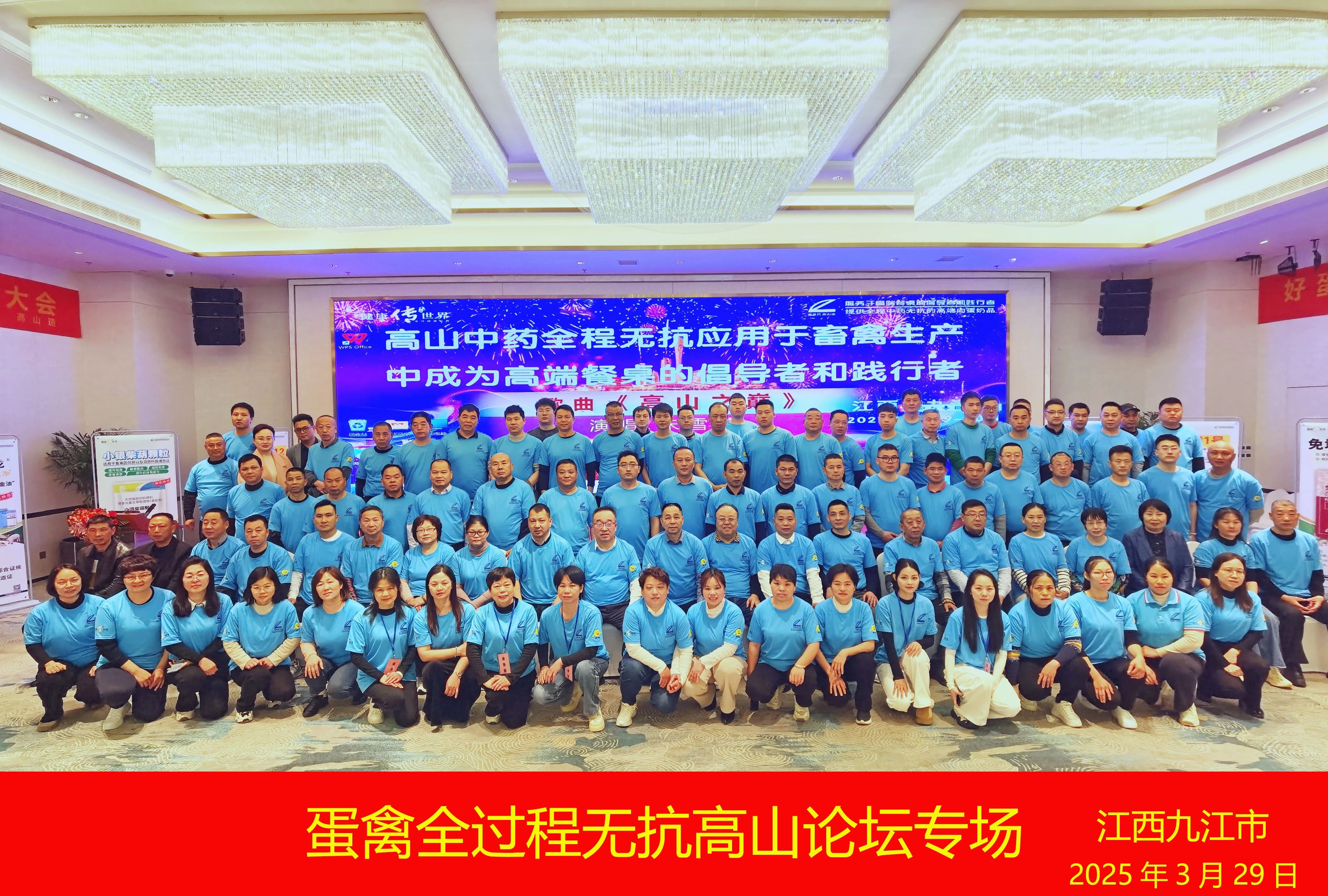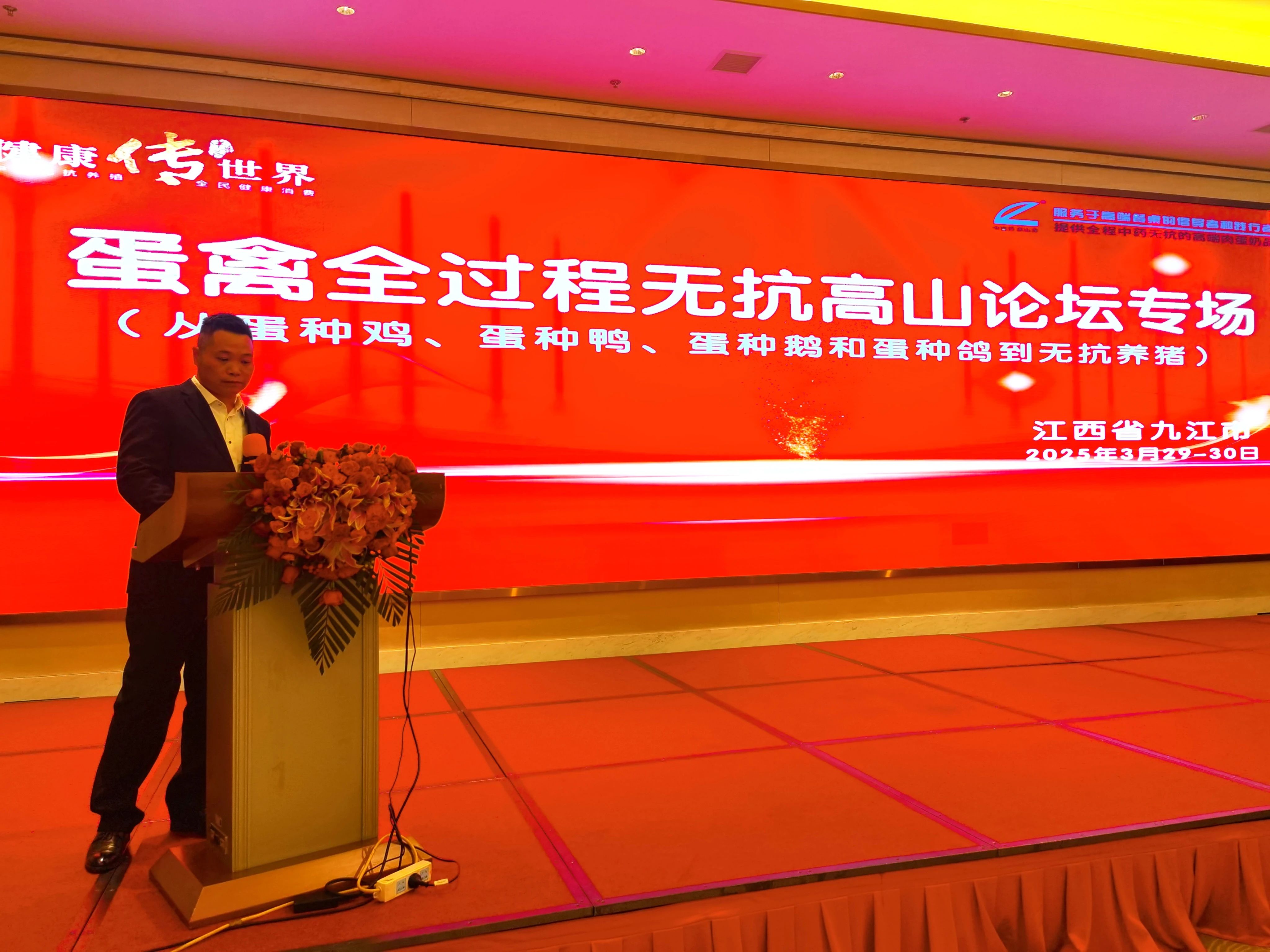 2025年3月29日,《蛋禽全過程無抗高山論壇專場》大會在江西九江濂溪開元名都酒店成功召開。大會以“高山中藥全程無抗應用于畜禽生產中成為高端餐桌的倡導者和踐行者”和“在實現蛋禽全過程無抗健康養殖上的高山實踐”為主題。來自全國三十多個省區的營銷經理、規模蛋禽養殖企業代表、客戶嘉賓和公司管理人員近150人參加,年度優秀員工代表列席參加。大會由商學院培訓師鐘飛燕主持。