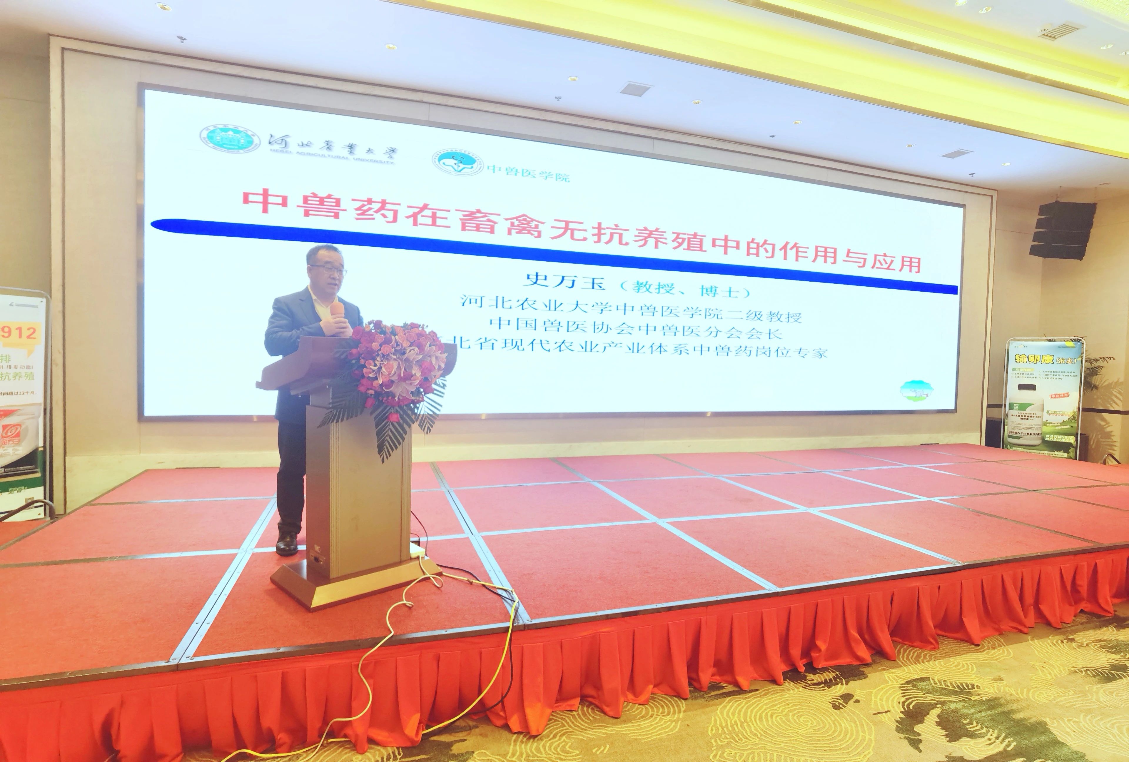 河北農業大學中獸醫學院二級教授、中國獸醫協會中獸醫分會會長、河北省現代農業產業體系中獸藥崗位專家、博士,教授作《中獸藥在畜禽無抗養殖中的作用與應用》報告,首先從當前畜禽養殖存在的主要問題和國家新型中獸藥產品研發現狀作了詳細的講解,同時指出中獸藥在畜禽無抗養殖中可用于保健、預防和治療,提高畜禽的生產性能,改善畜禽的產品質量,改善飼料的品質等。最后指出隨著政府對動物源性食品安全問題的極大關注以及民眾對食品安全重要性認識的不斷提高,中獸醫藥必將在畜禽綠色健康養殖中發揮更大的作用。