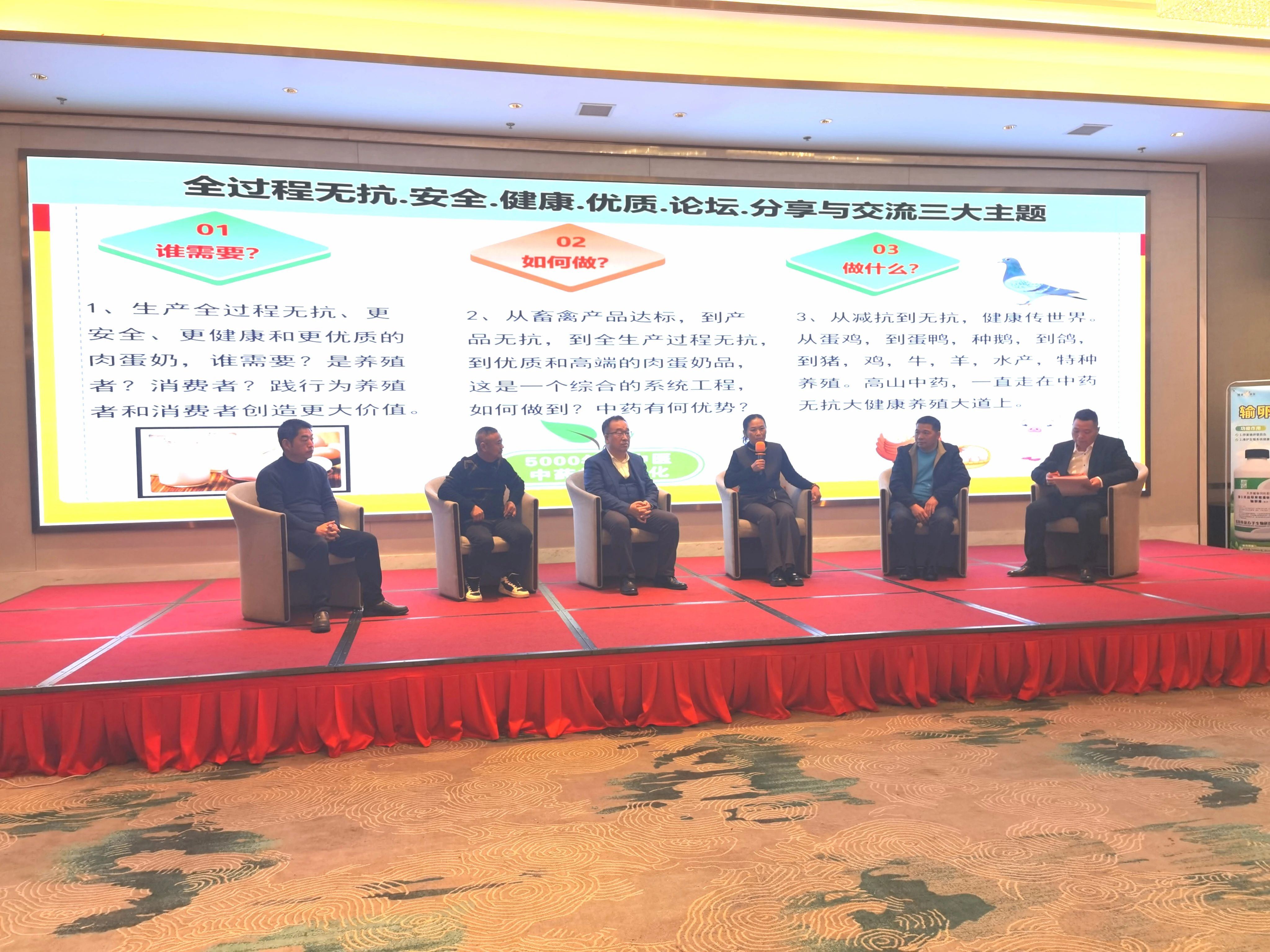 由胡友軍老師主持《蛋禽全過程無抗高山論壇專場》,從蛋種雞、蛋種鴨、蛋種鵝和蛋種鴿到無抗養豬。論壇上,中獸醫專家史萬玉教授、養殖企業嘉賓代表和資深獸醫服務代表圍繞“誰需要全過程無抗肉蛋奶、如何做、中獸藥可以做什么?”進行互動和交流。專家和嘉賓代表們表示,消費者健康意識的提升以及對食品安全的高度關注,對全過程無抗肉蛋奶的需求越來越大。要實現全過程無抗,需從種苗篩選、飼料品質把控、生物安全防護以及疫病防控體系建設等多方面著手。中藥既能有效預防疫病,減少蛋禽發病機率,又能提升蛋禽免疫力和生產性能,還能改善肉蛋奶品質,從源頭保障食品安全。嘉賓們也分享了使用中藥從減抗向無抗推進的實戰經驗。專家與嘉賓們的交流碰撞,為大家帶來寶貴的啟示與思考,也激勵著行業同仁攜手共進,推動蛋禽全過程無抗養殖邁向新高度 。