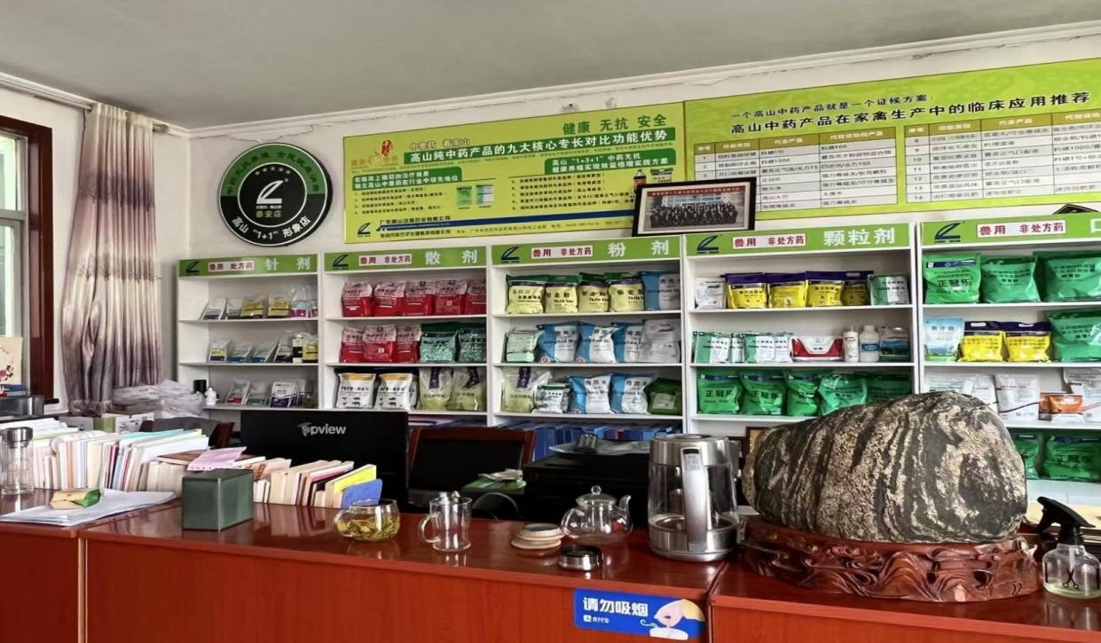 加入高山1+1形象店之后,我們統一了VI與服務形象。你看,高山形象店門面的那一片高光綠,總是那么閃耀;這樣體現我們更專業、更嚴謹、更專注。堅定傳播中醫中藥理念與使用高山中獸藥在養殖生產應用上,堅定地走全過程無抗養殖的道路。