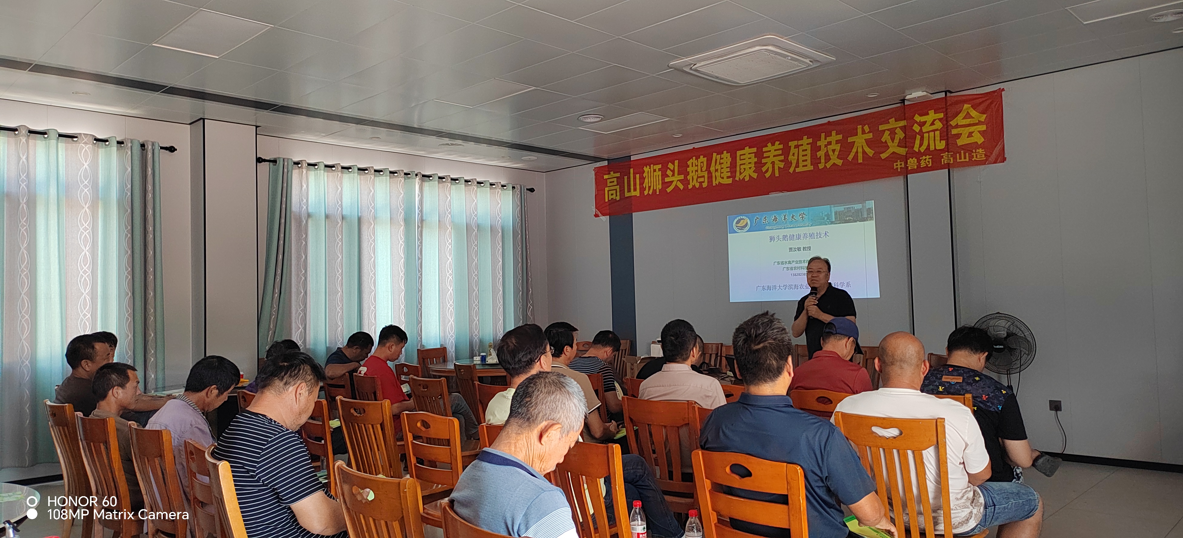 廣東海洋大學濱海農業學院動物科學系賈汝敏教授,高山集團營銷經理蔡文清及高山銅人形象店店長、客戶嘉賓代表等50多人參加會議,共同探討中藥無抗技術在獅頭鵝產業中的創新應用。
