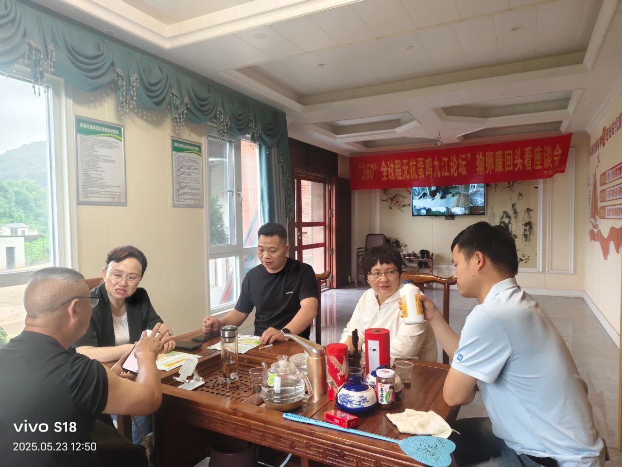 高山集團(tuán)蛋雞技術(shù)顧問胡友軍、江西區(qū)域經(jīng)理潘朝梅、湖南區(qū)域經(jīng)理黎榮宇等代表與胡橋農(nóng)業(yè)發(fā)展有限公司王賢輝總經(jīng)理、共青城興牧農(nóng)業(yè)負(fù)責(zé)人熊總等,圍繞“輸卵康”應(yīng)用效果展開深度交流。