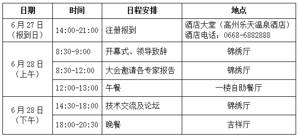 報到及住宿地點:高州樂天溫泉酒店(聯系電話0668-6882888),高州市樂天大道1號(廣東省高州市石仔嶺街道、207國道旁)